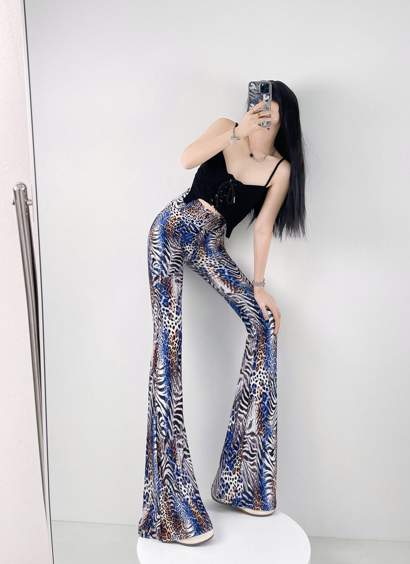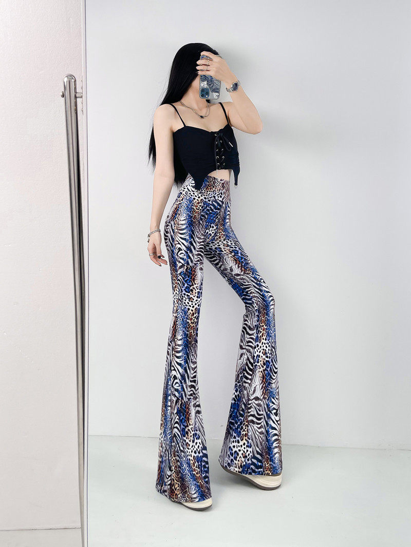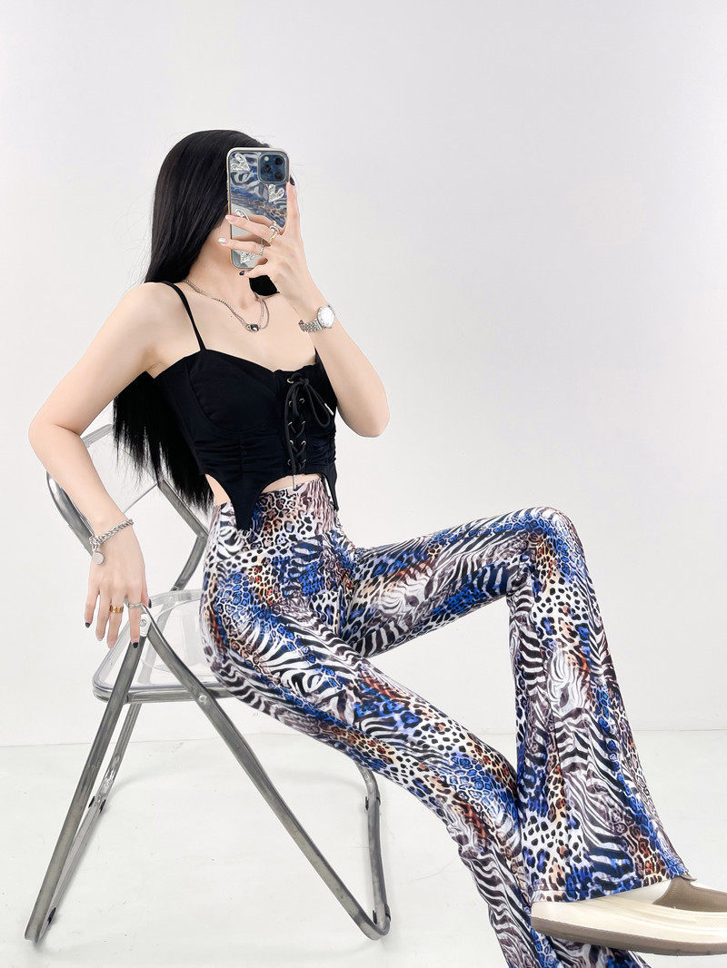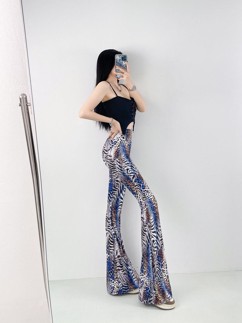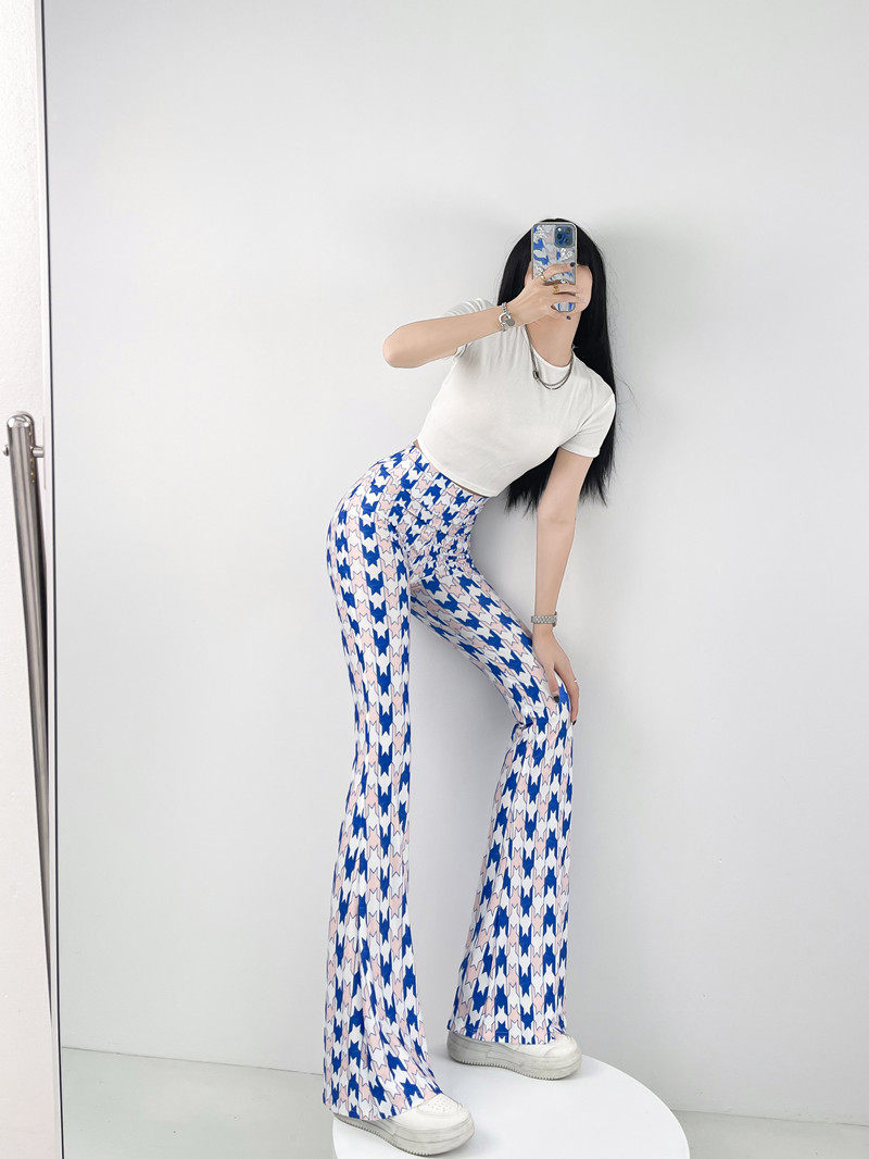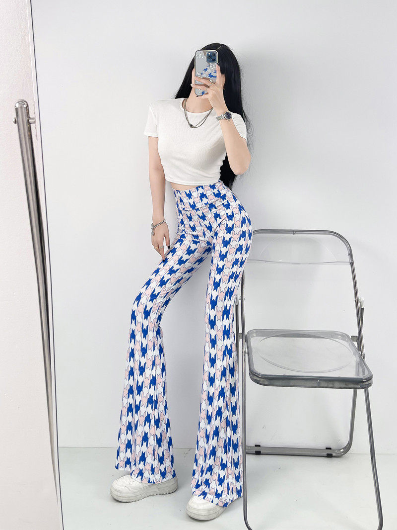 本款是牛奶絲薄款高腰印花喇叭褲,