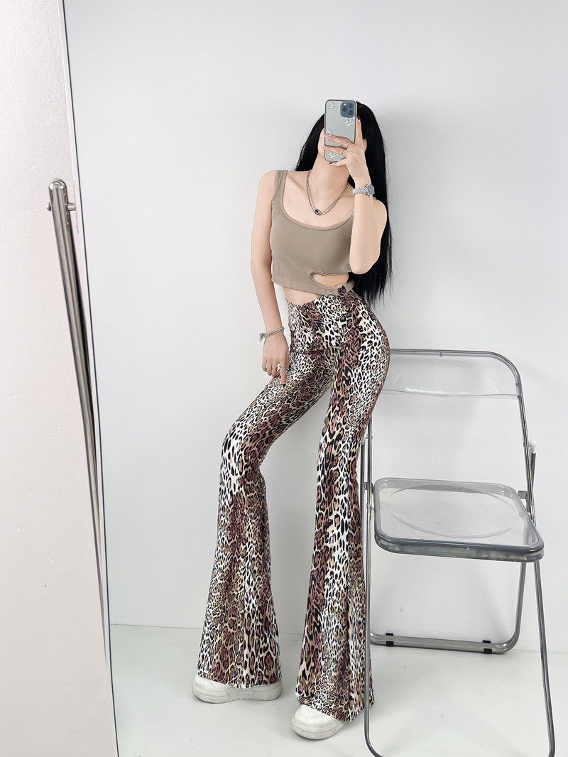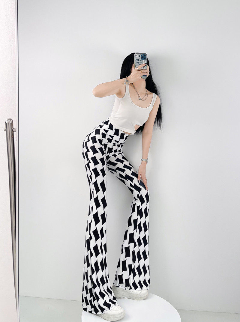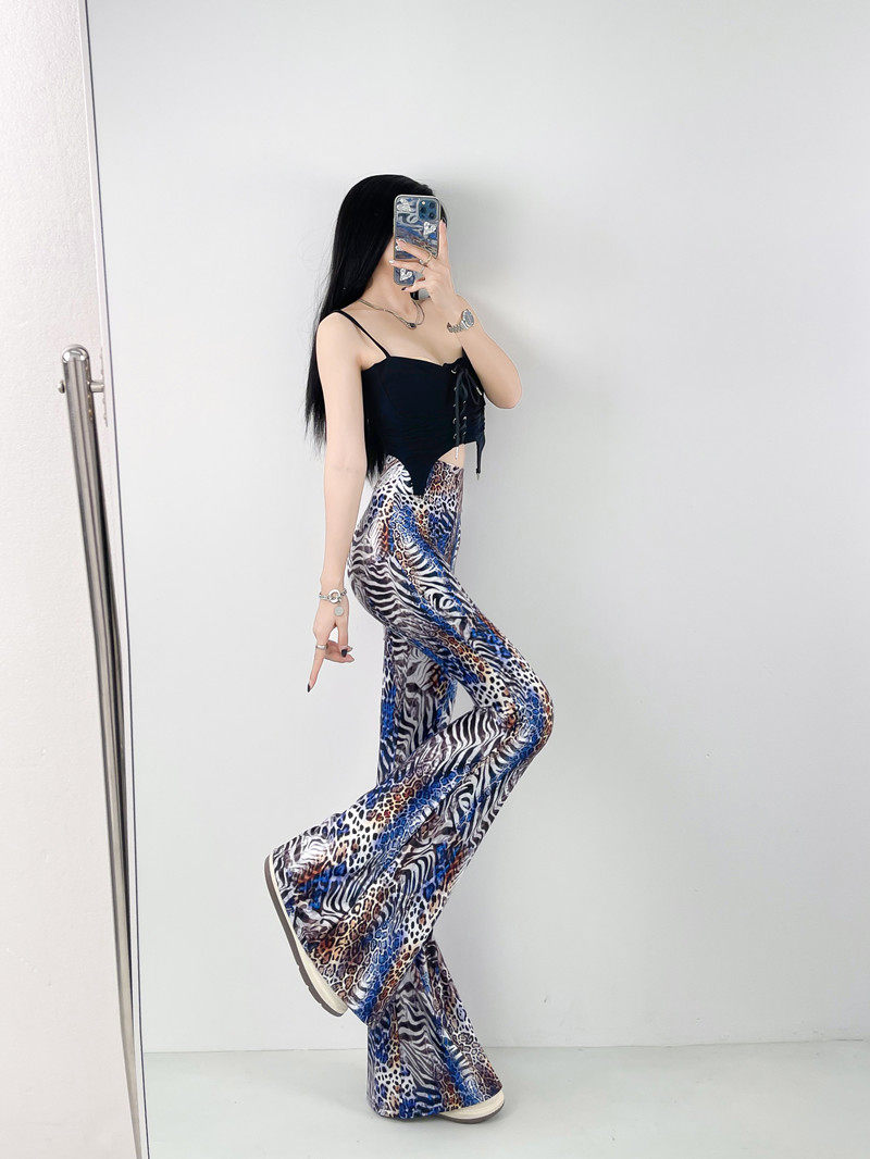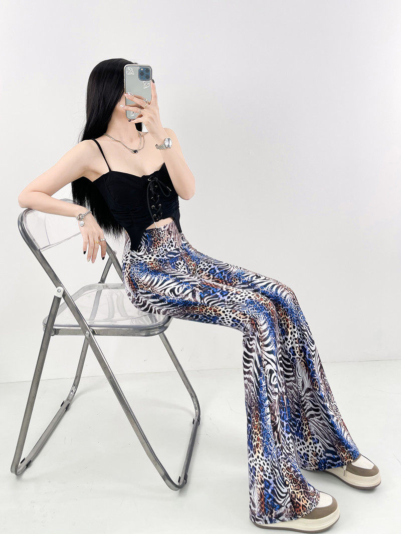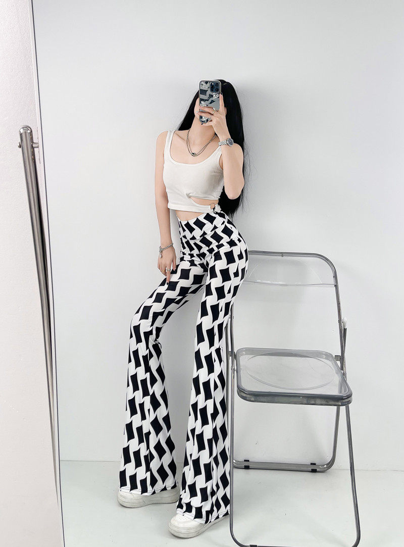 本款是牛奶絲薄款高腰印花喇叭褲,