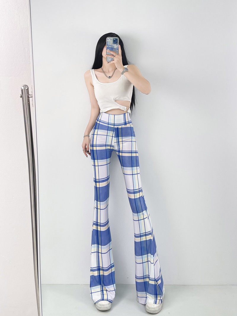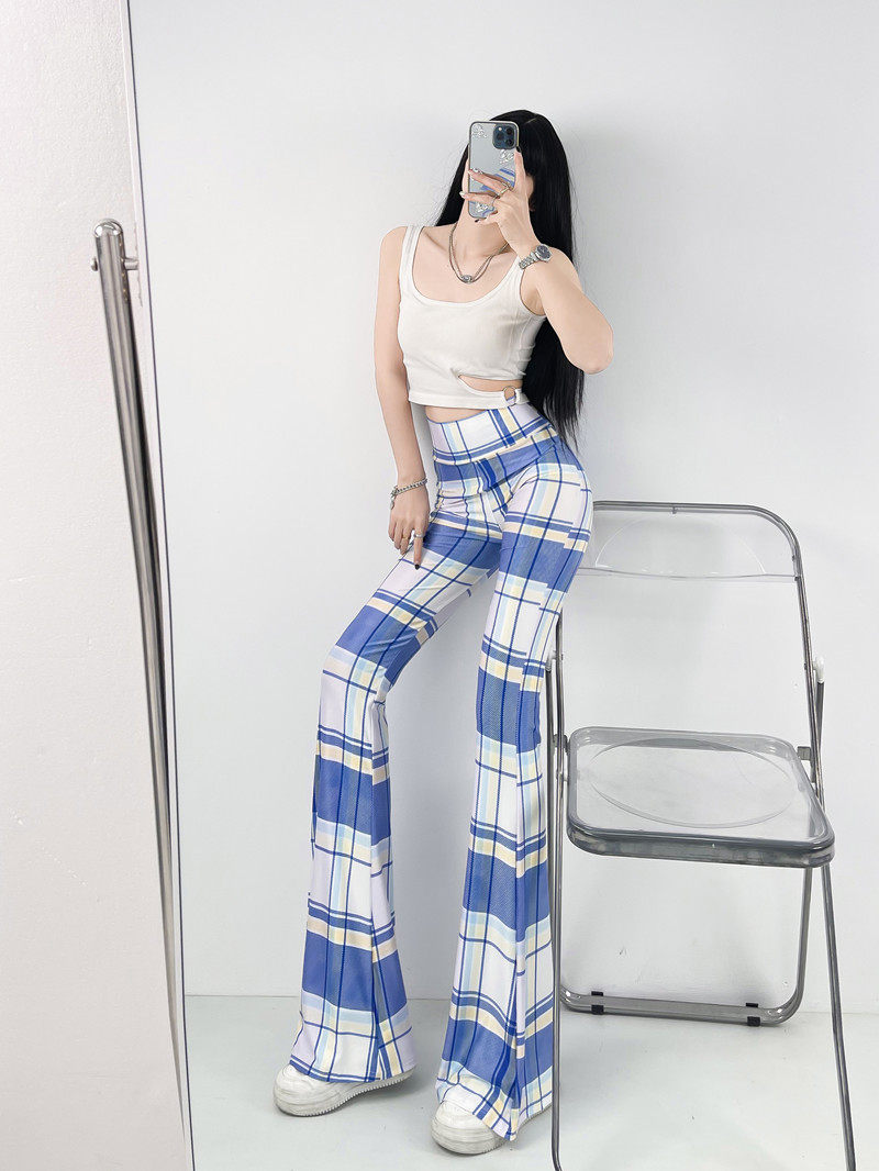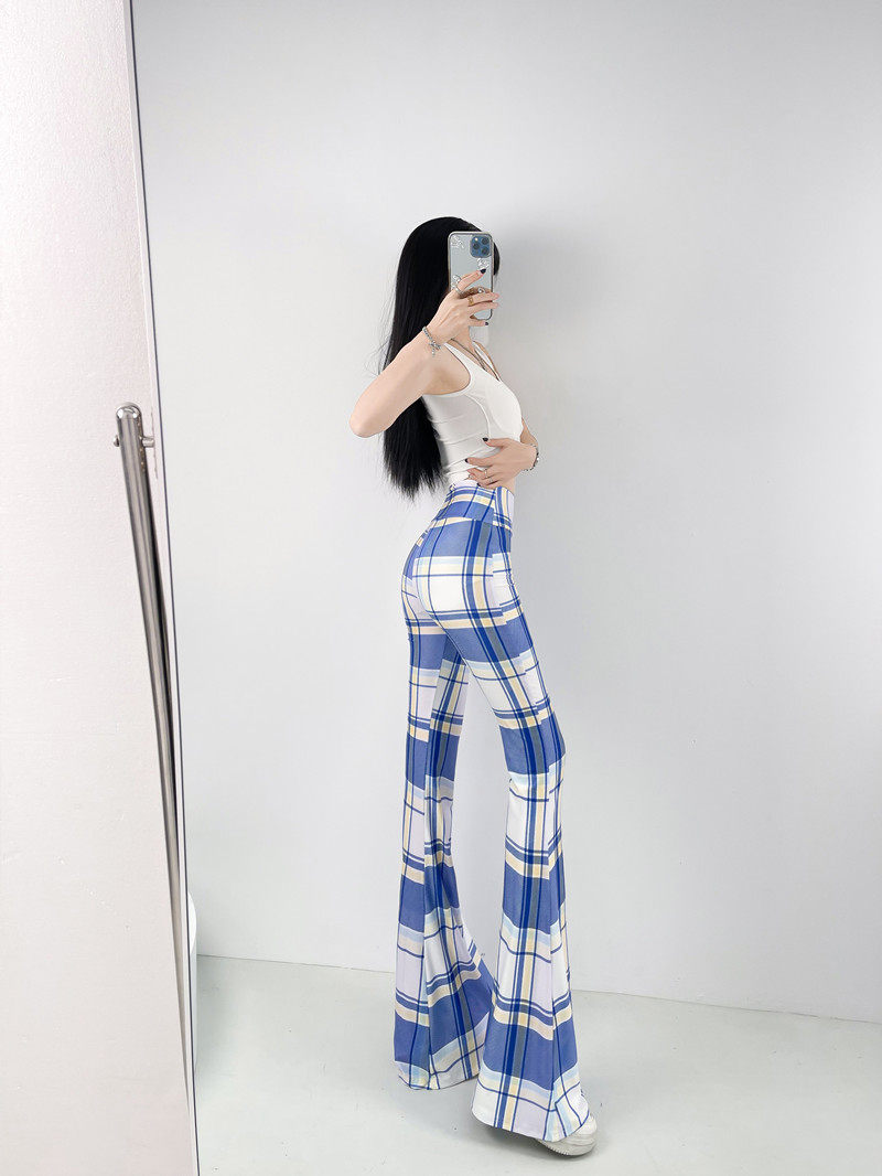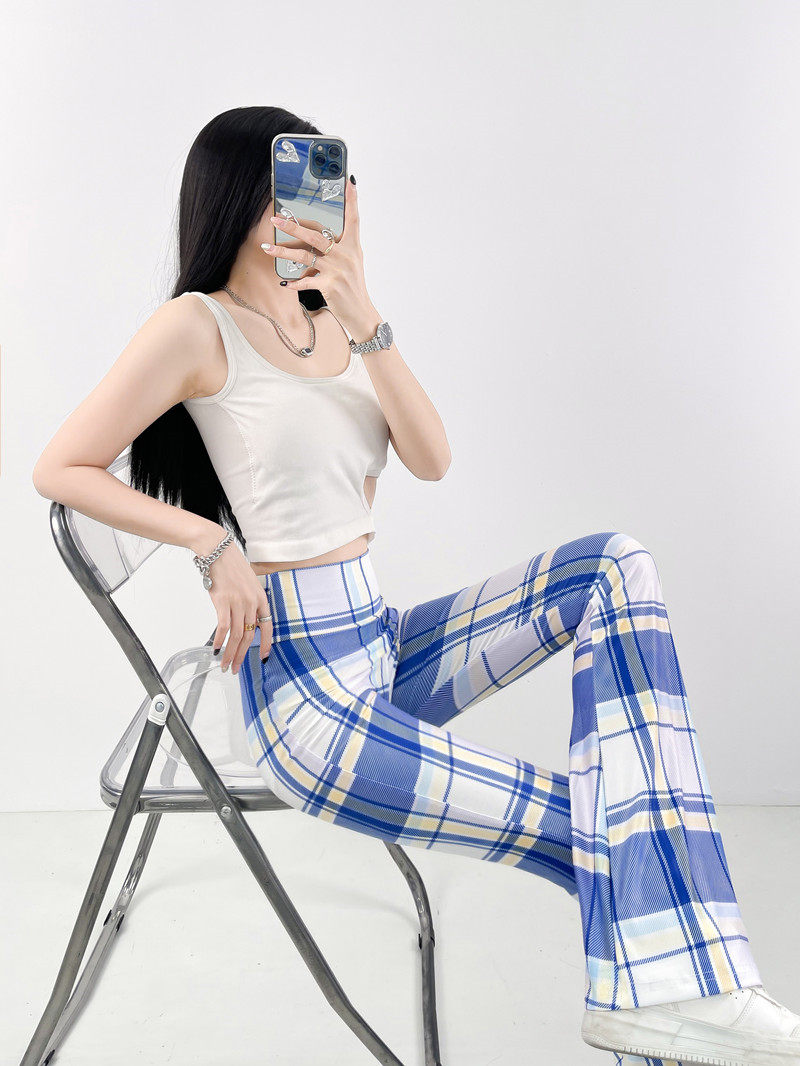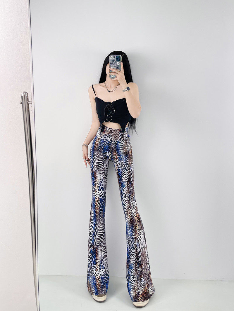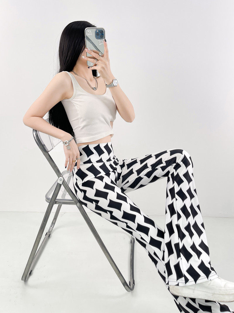本款是牛奶絲薄款高腰印花喇叭褲,