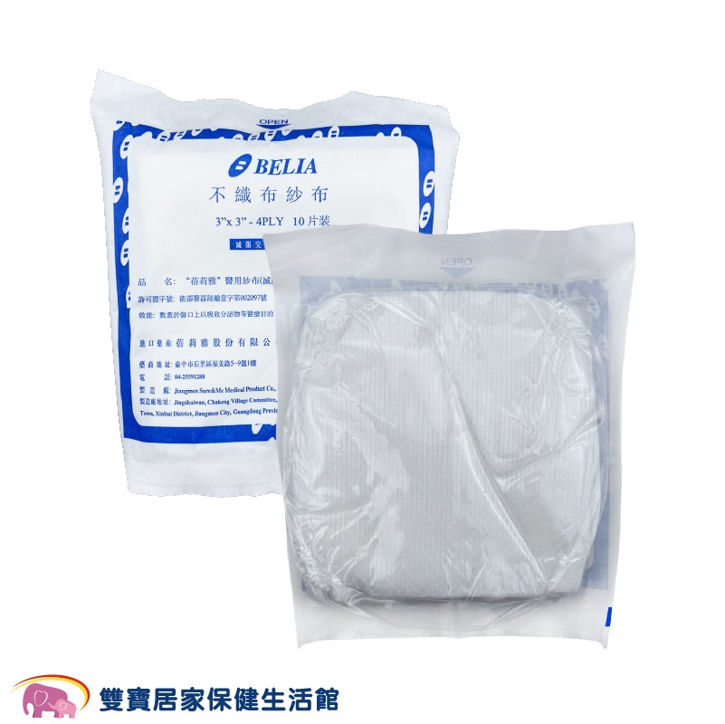醫療器材許可證所載品名:"蓓莉雅" 醫用紗布 (滅菌)