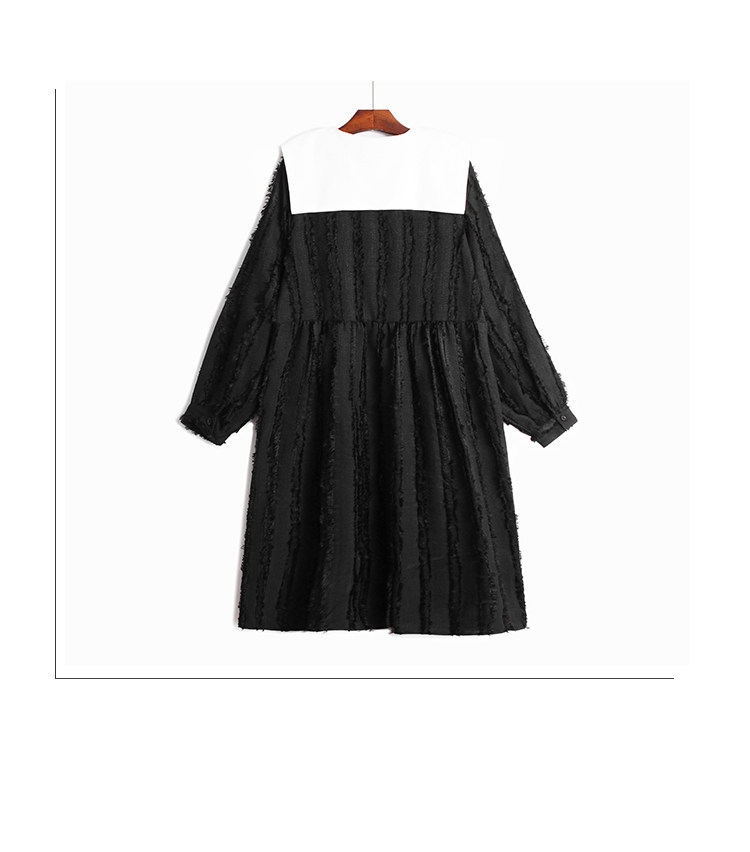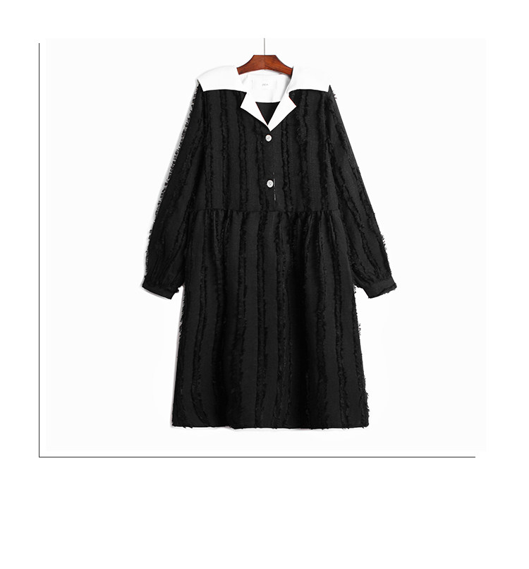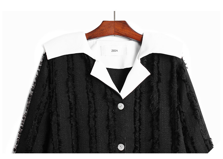 寬松加大碼的版型,撞色減齡海軍披肩領,兩粒貝殼扣點綴半開襟,