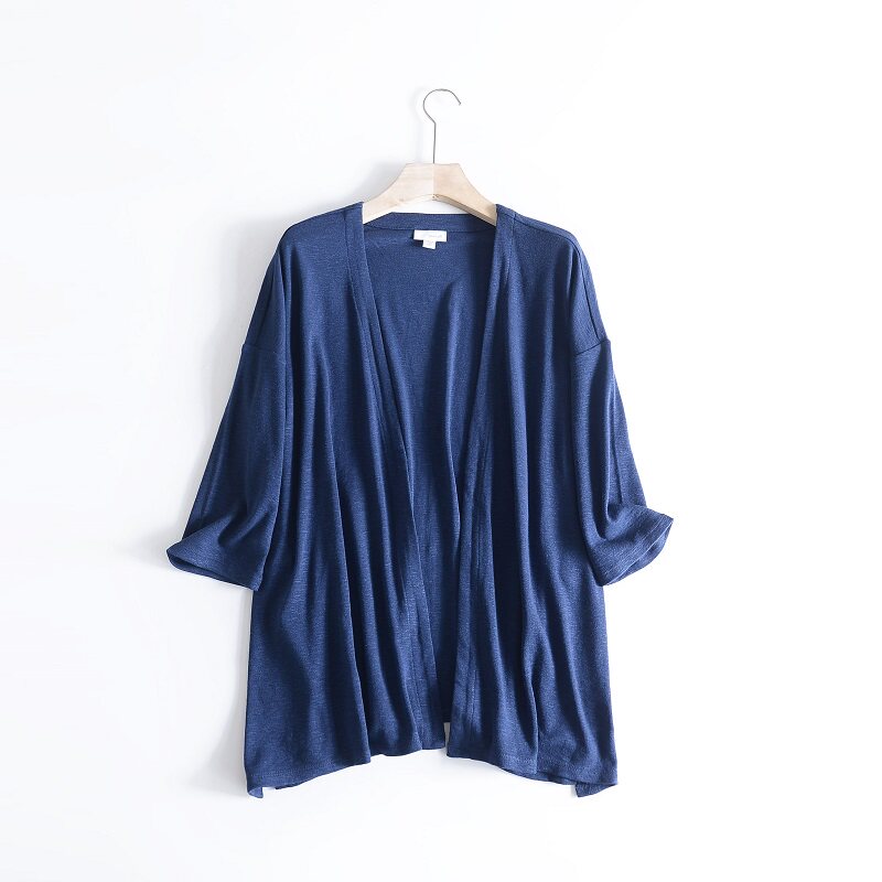 2024胖MM春夏新款,歐美加肥加大碼女裝,天絲和麻混紡,溜肩七分袖竹節針織無扣開衫,下擺開叉,牛仔藍顏色百搭顯瘦,款式簡潔大氣版型佳,面料親膚舒適質感好,免燙不皺透氣有垂感,寬松版型有彈性,穿大點小點都可以的,夏天可以做空調衫,出門旅游坐大巴或者進空調房都是很好的選擇,春秋季外搭好穿的。