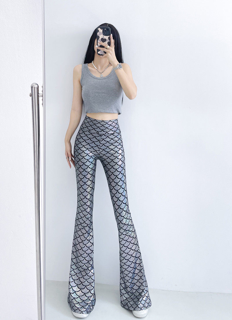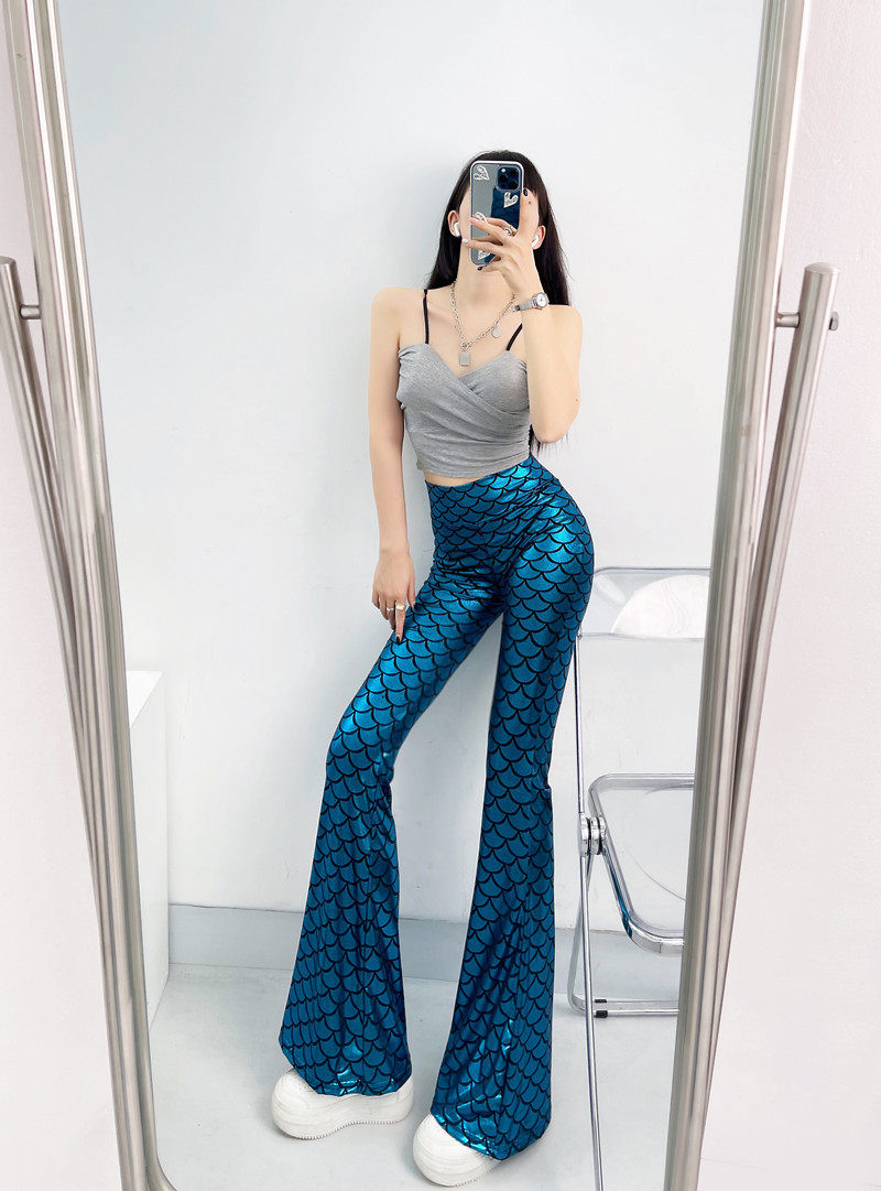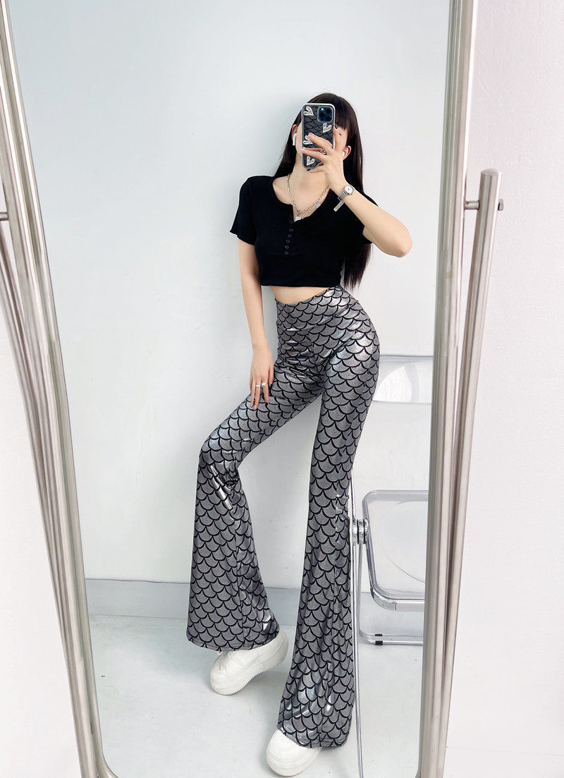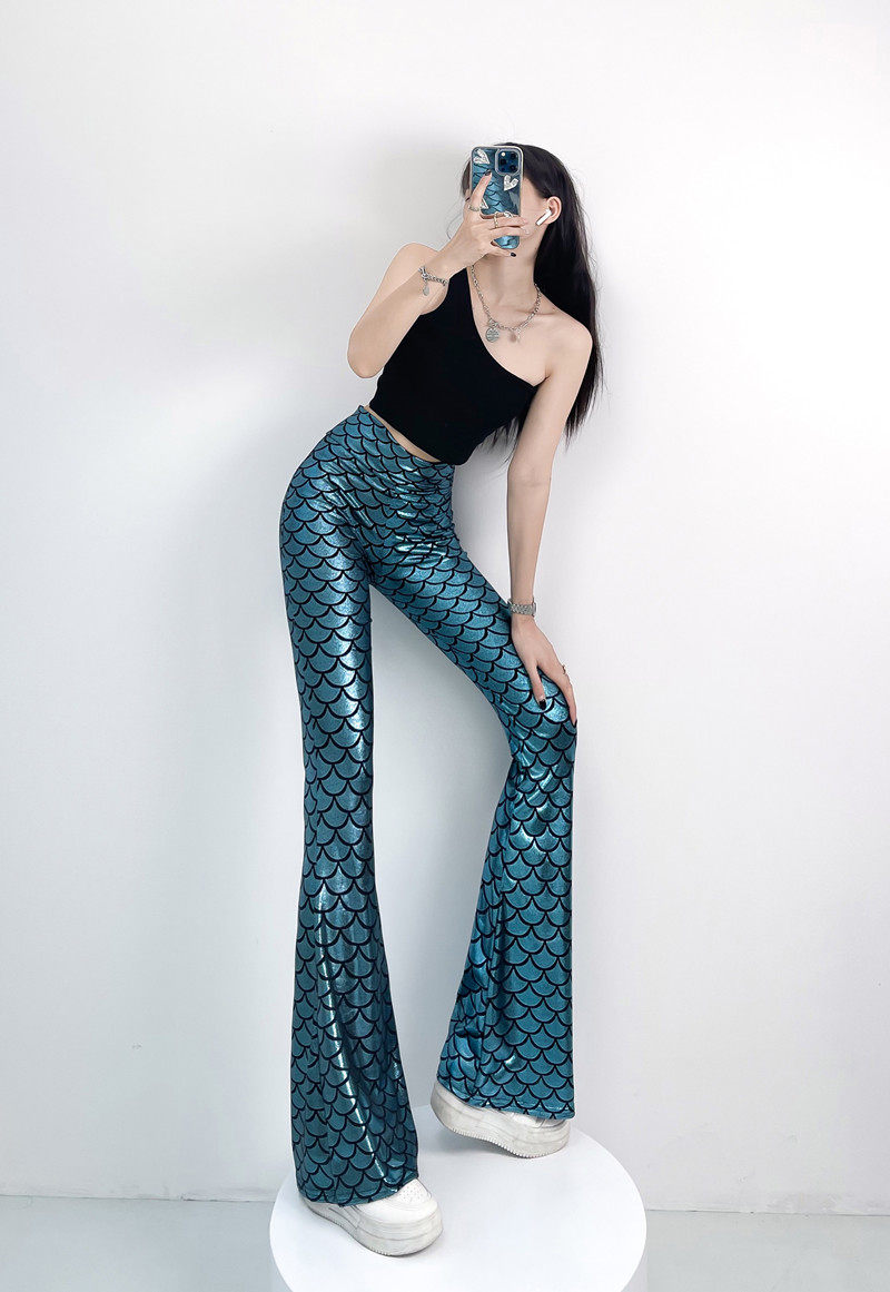 今年流行的魚鱗燙金喇叭褲