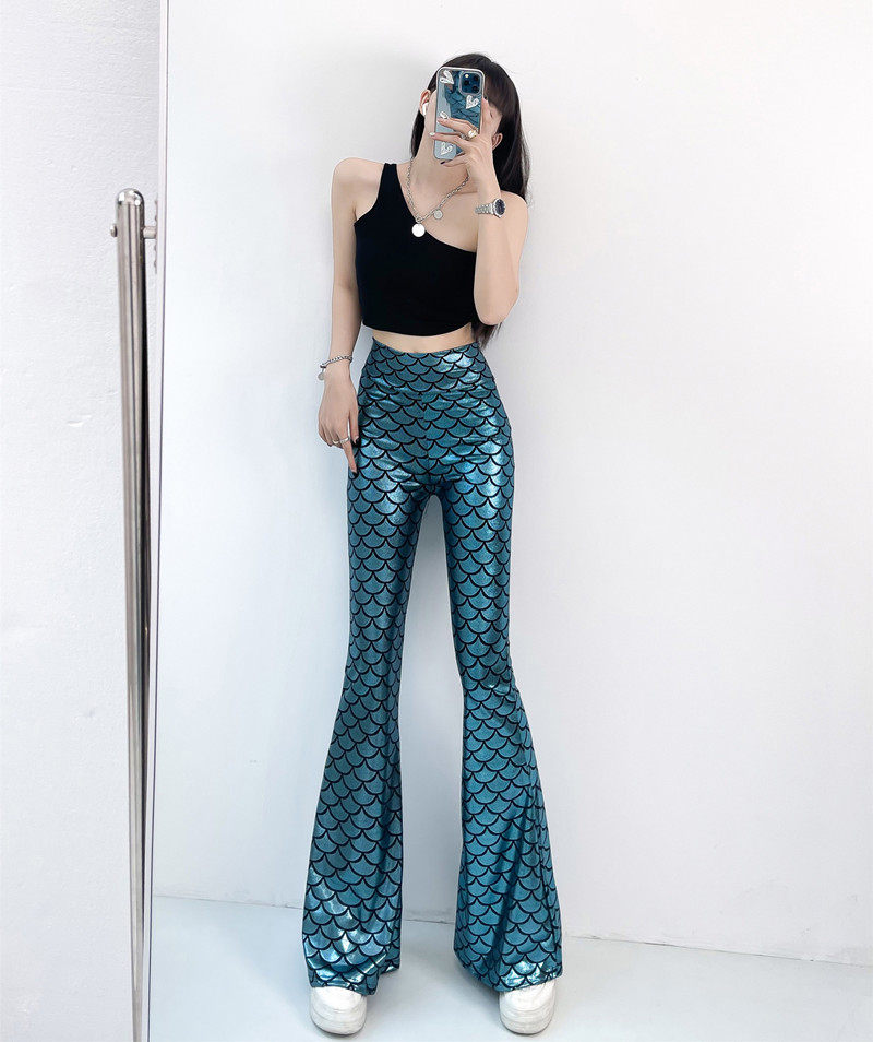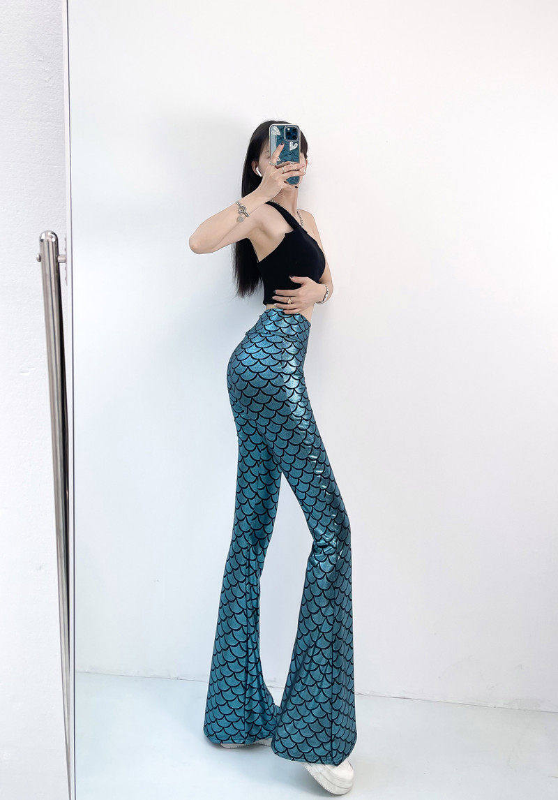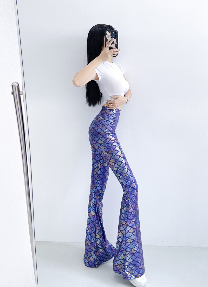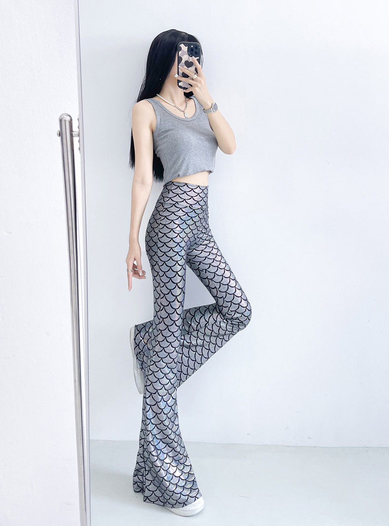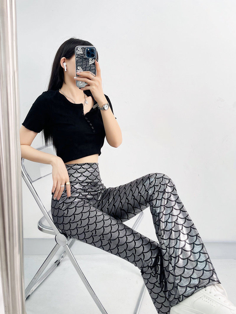 今年流行的魚鱗燙金喇叭褲