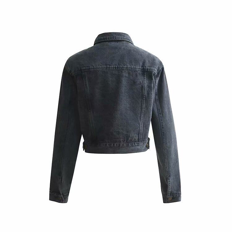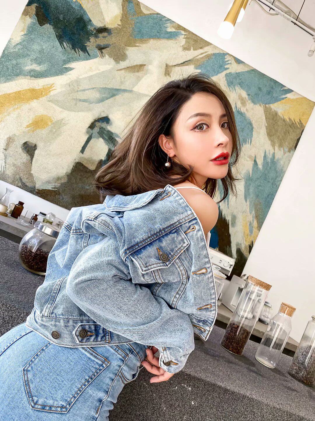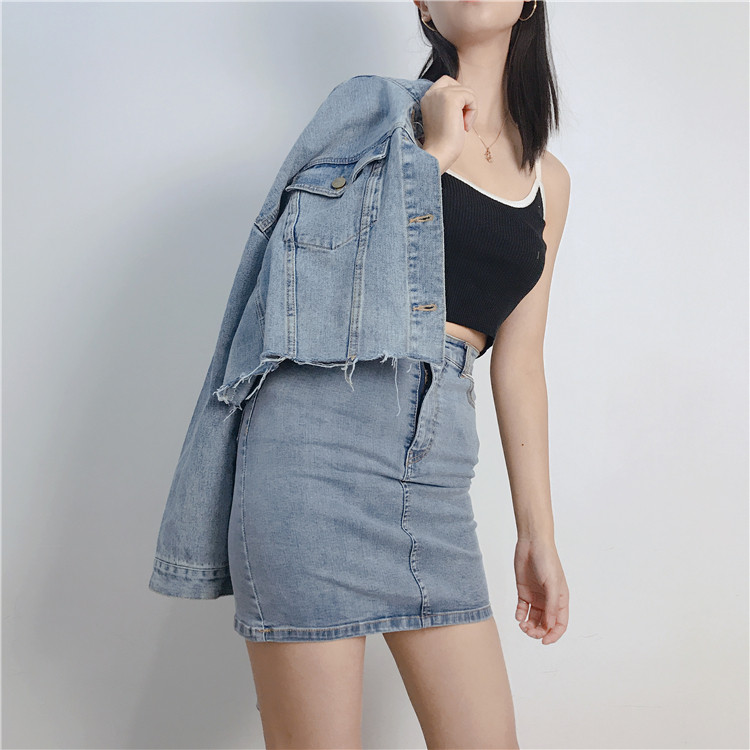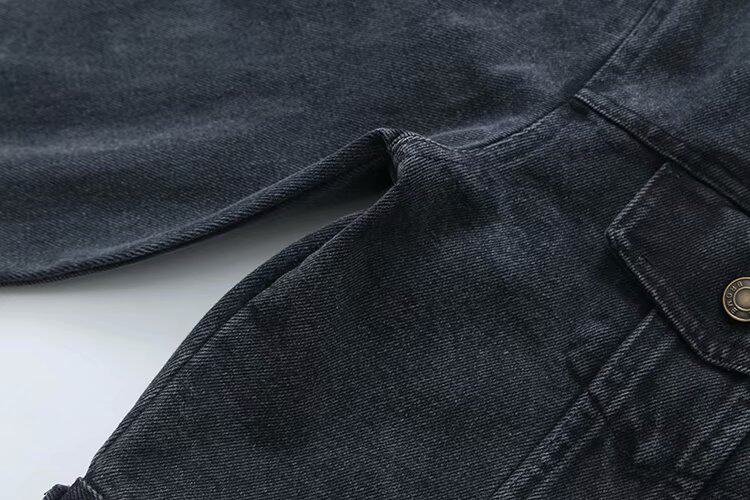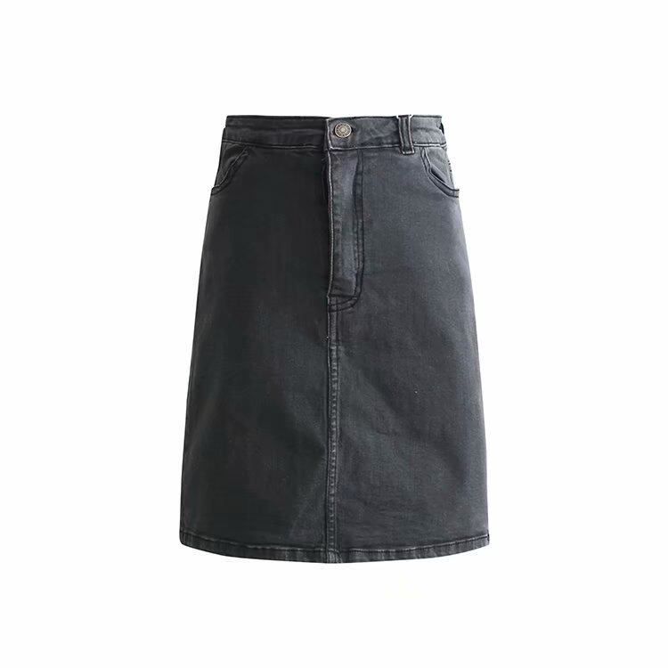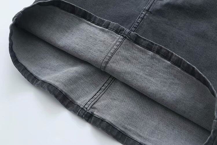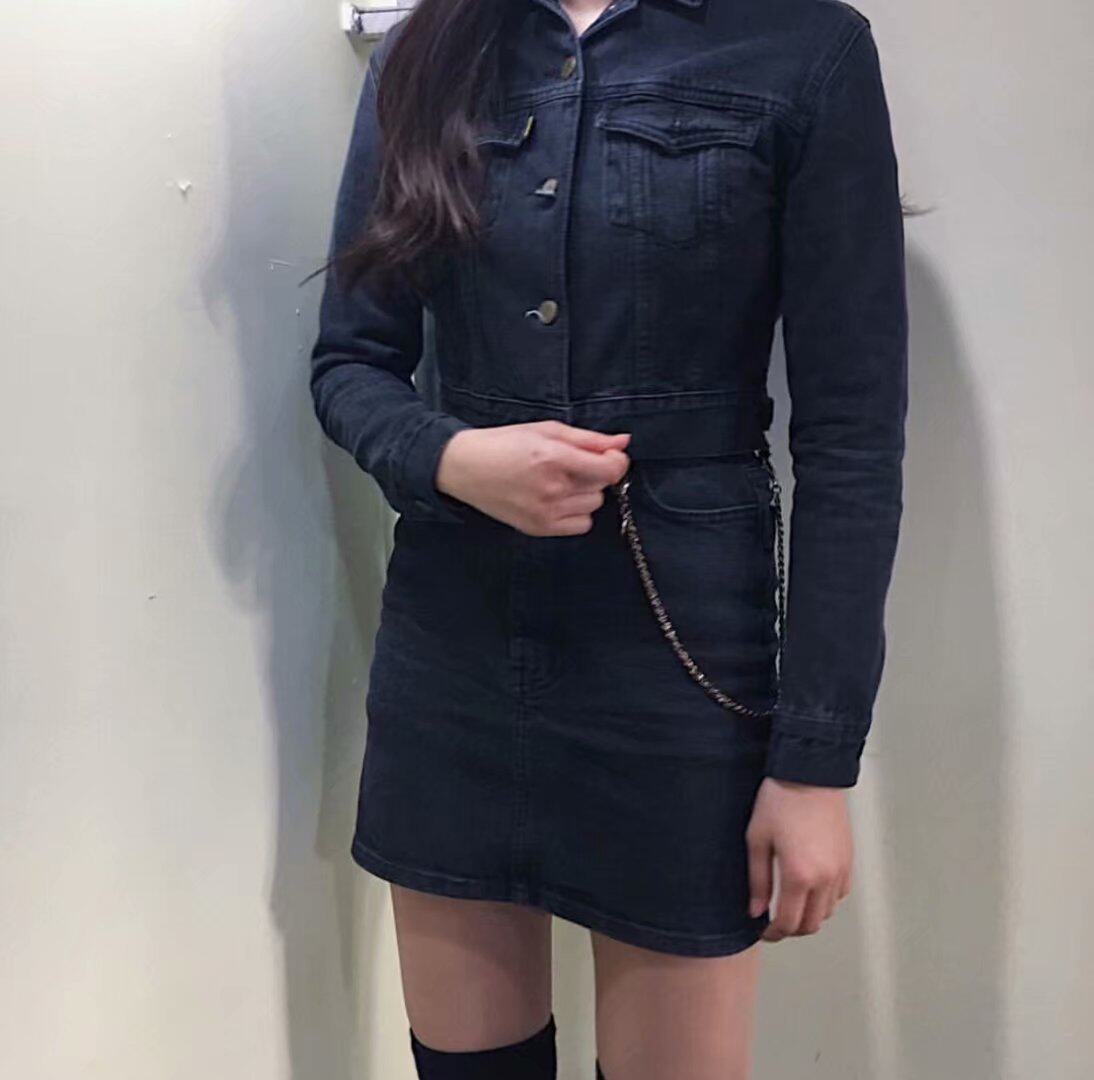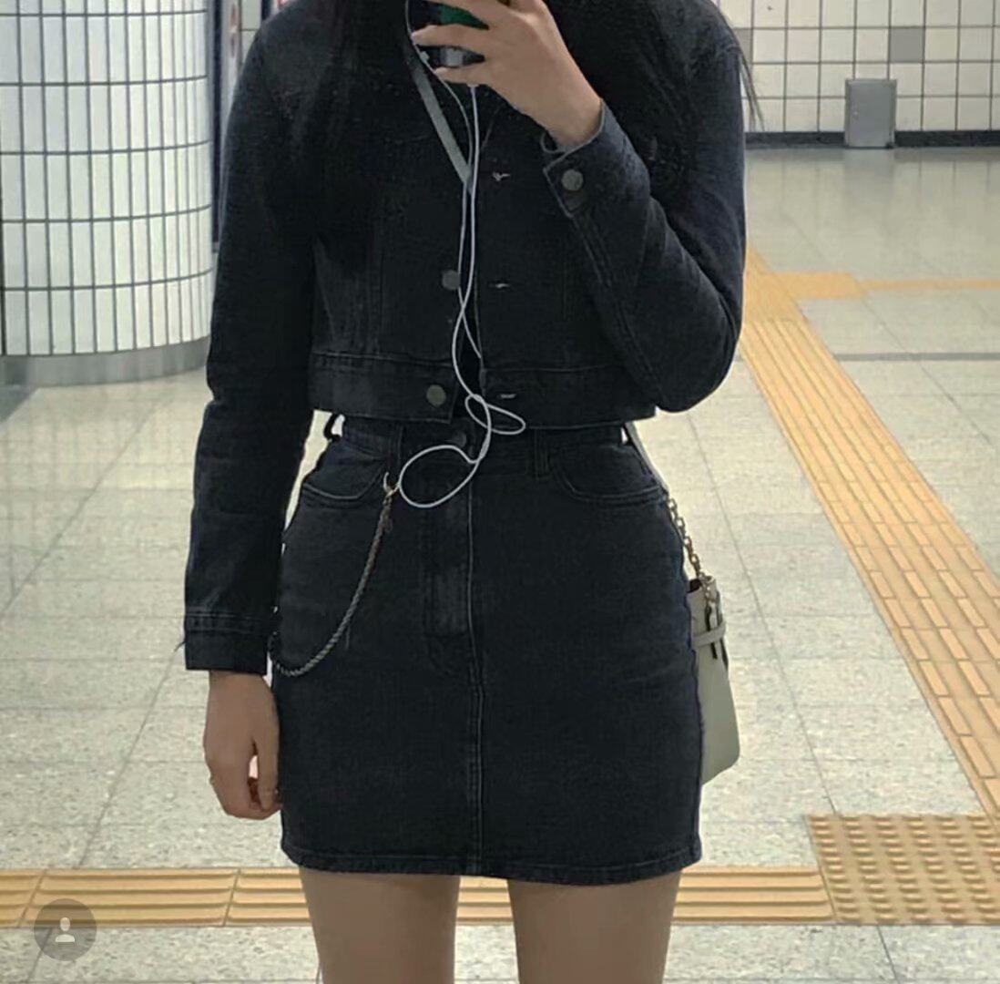 | · 產品顏色: 黑灰色 材質 (要說明的是,裙子跟外套的裙子面料是不一樣的哦,外套是純牛仔,而裙子是包臀裙,是有彈力的哦) |