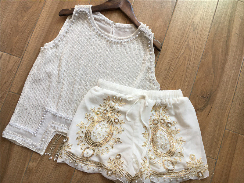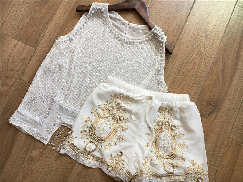手工釘珠奢華背心上衣+雪紡短褲