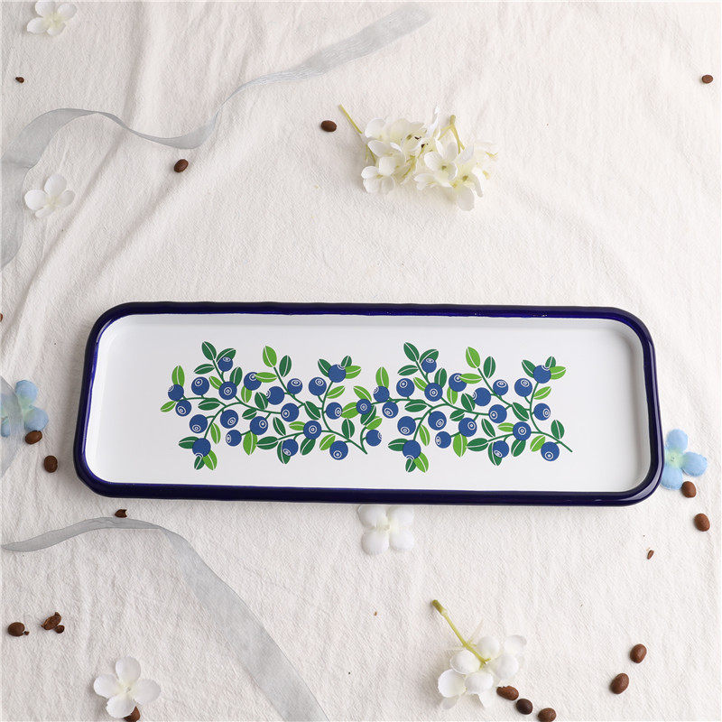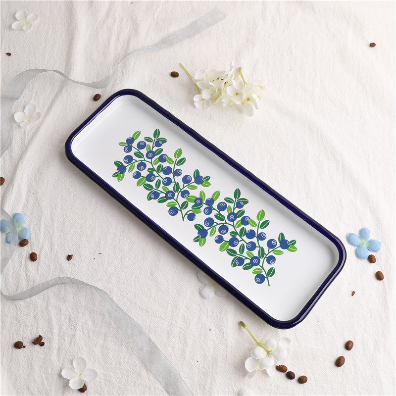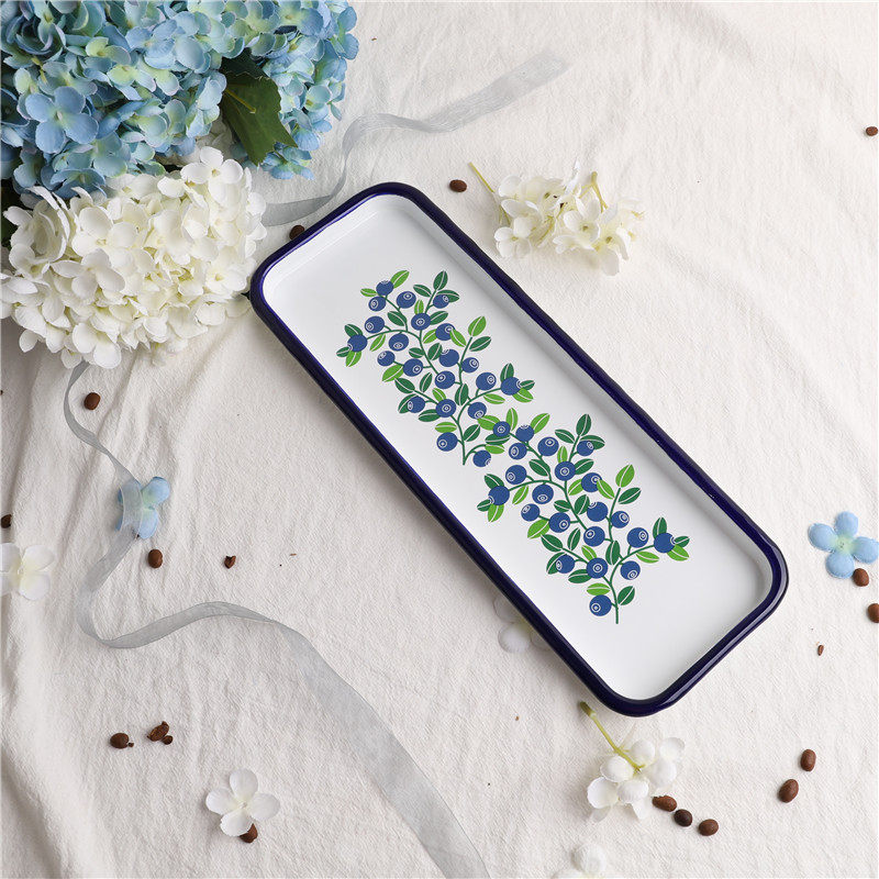 印象搪瓷 琺瑯 出口芬蘭 藍莓系列復古搪瓷壽司盤方托盤烘焙盤烤魚盤烤肉盤