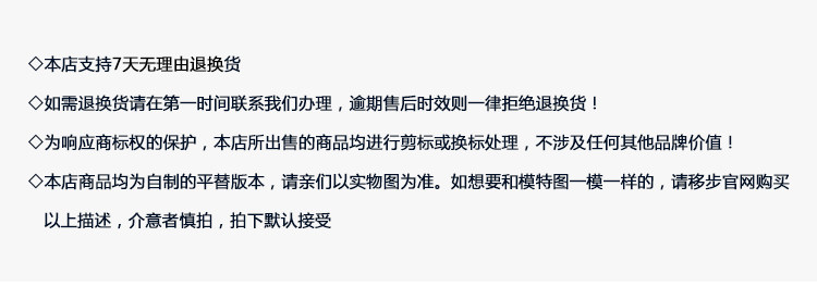 因商品為海外寄送,若拒收包裹,包裹將會退回海關並被銷毀,且訂單款項不會退款。請務必在下單前確認收件地址及商品內容無誤。 - 非瑕疵商品退貨手續費