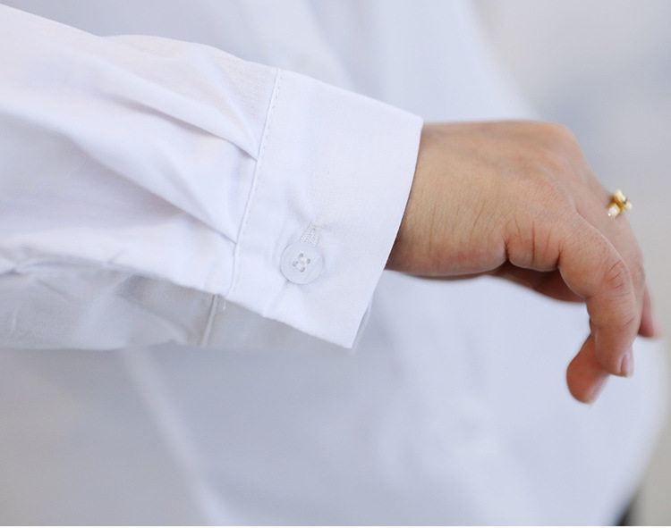 有短袖和長袖,面料有彈性,穿著非常舒服。有V領和翻領兩種領子,翻領是用來系領帶用的