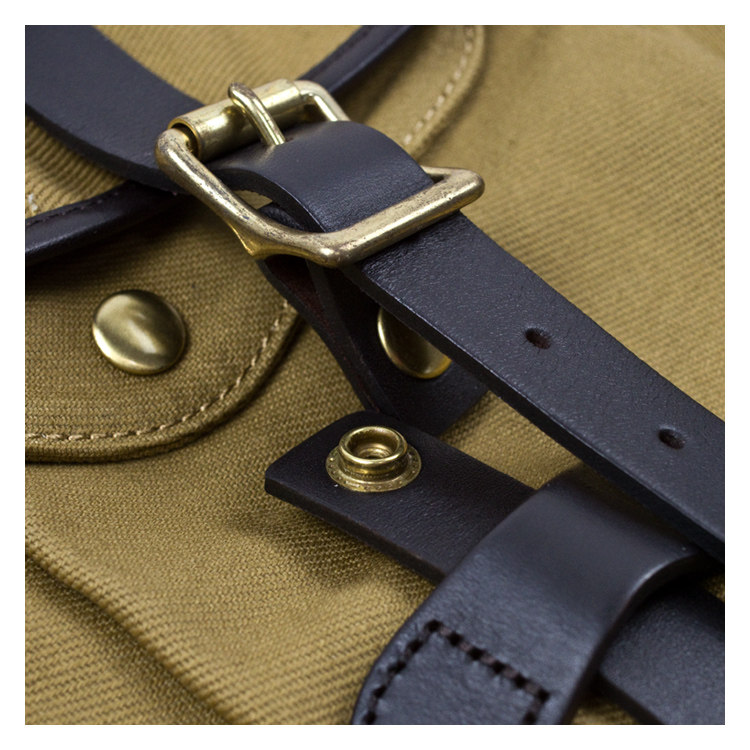 正面的外部插袋采用跟原版一致的子母鉚釘型黃銅扣鎖: