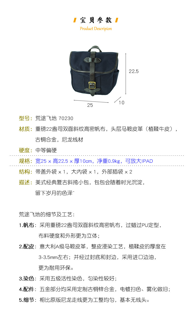 德產織布機織出的22盎司重磅斜紋帆布,精密的帆布車工縫線: