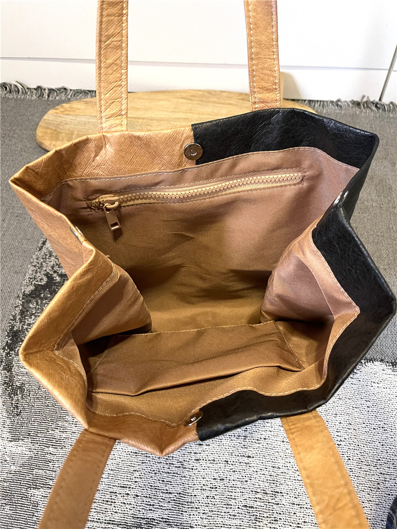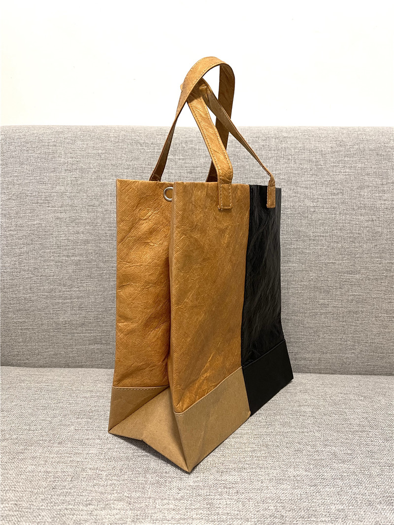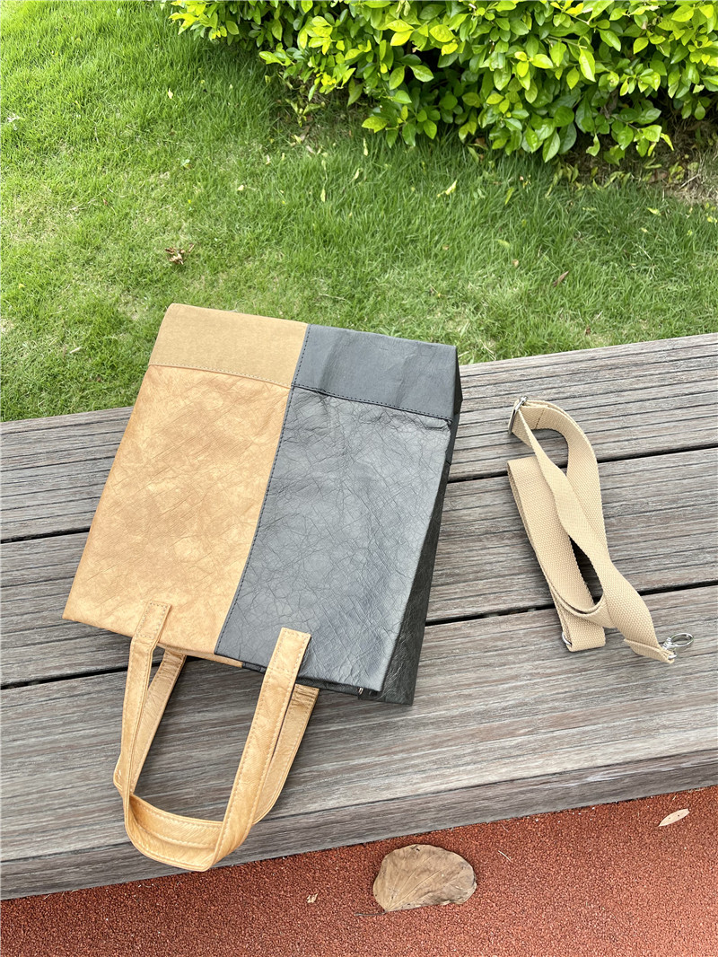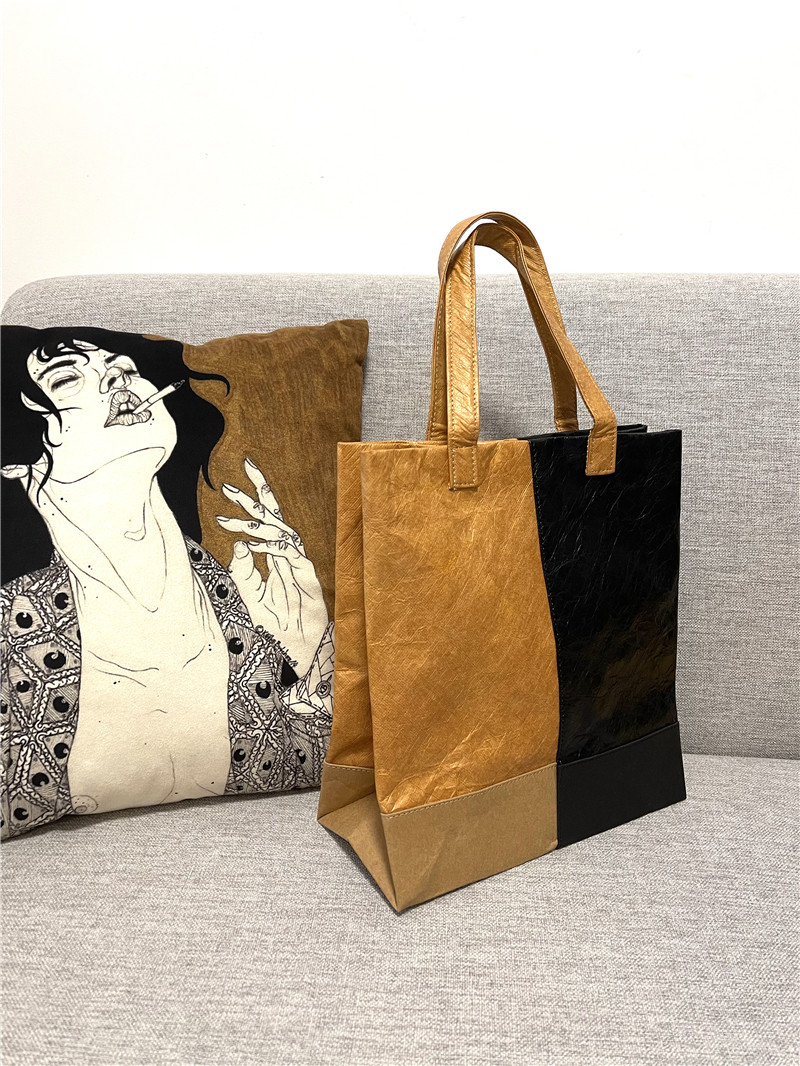 集紙張織布和薄膜材料特性于一身,具有防水防塵透氣質輕,強韌耐撕環保可回收等特性紋理獨特觸感光滑這種神奇的紙感和反差感通過設計師的想像與創意設計產品時尚前沿充滿個性,百搭時尚的單品