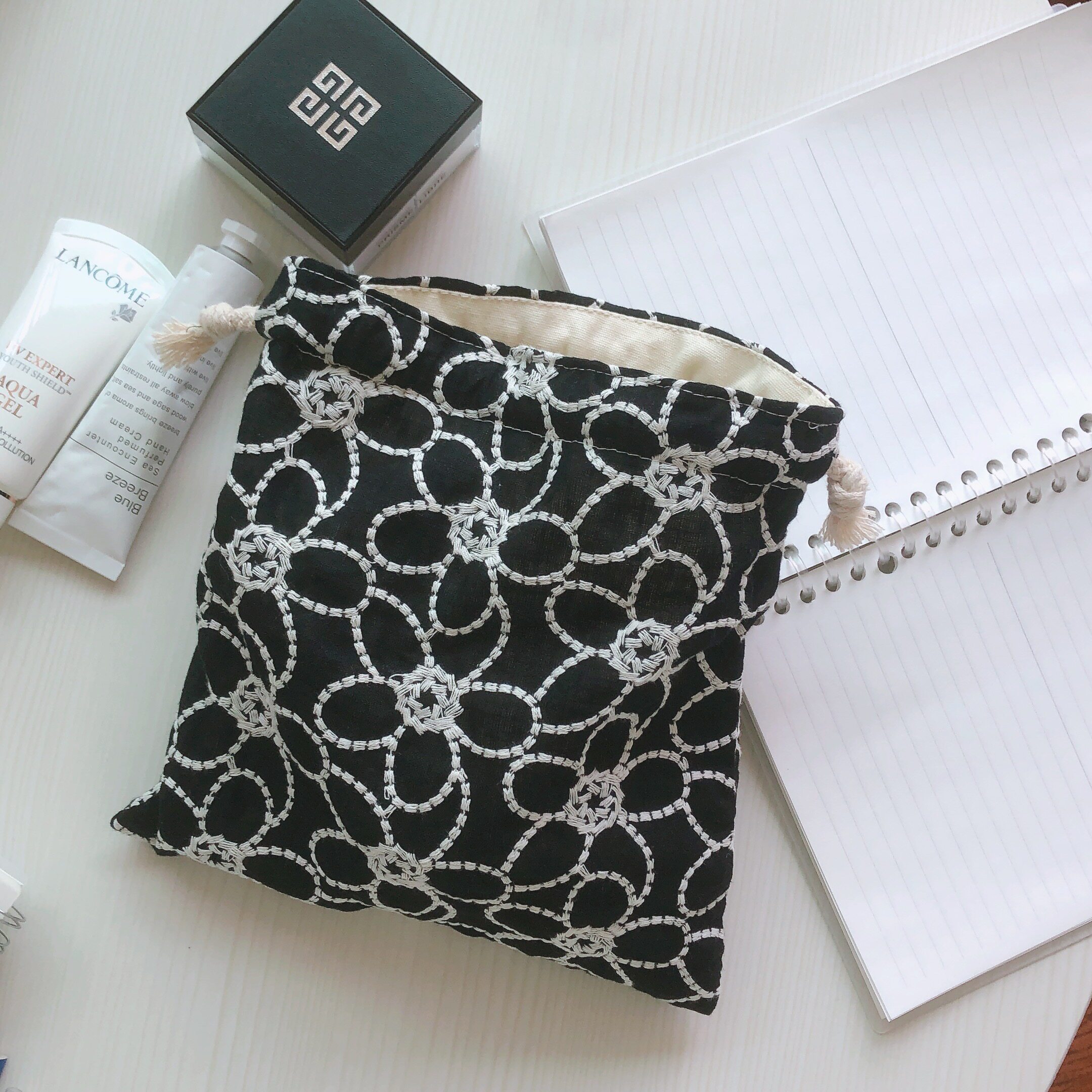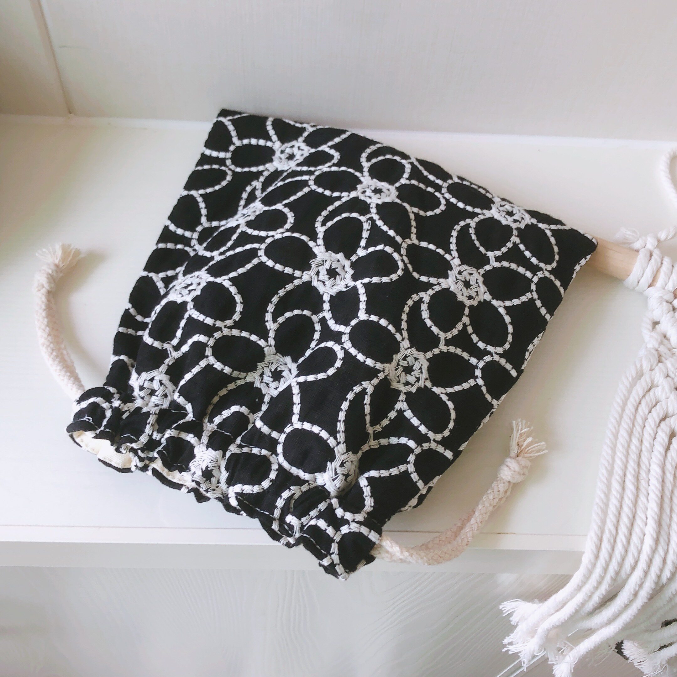 面料:外蕾絲刺繡棉布+內米白色10安帆布