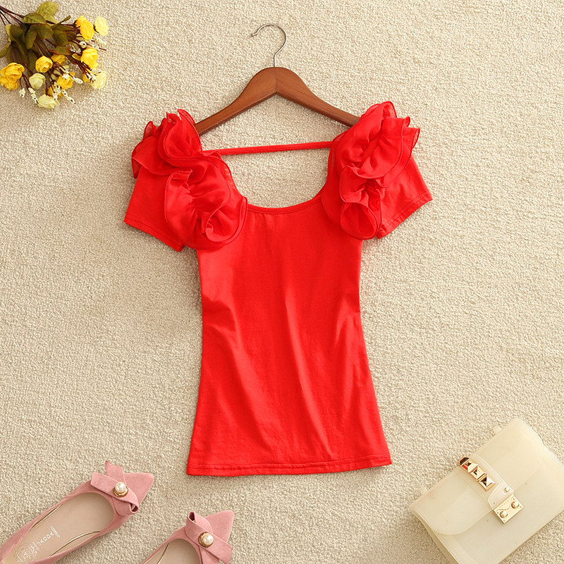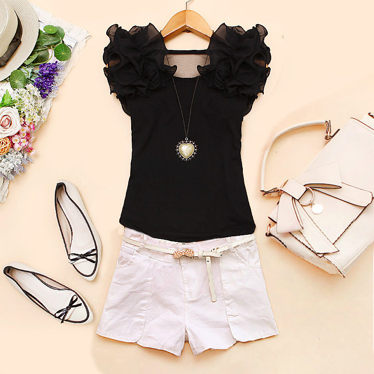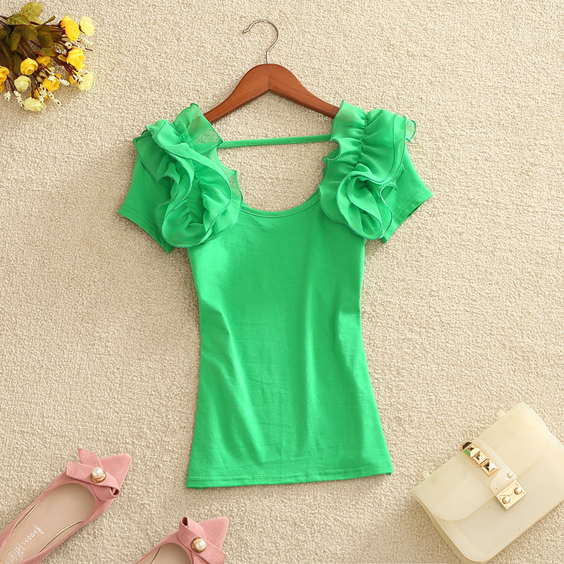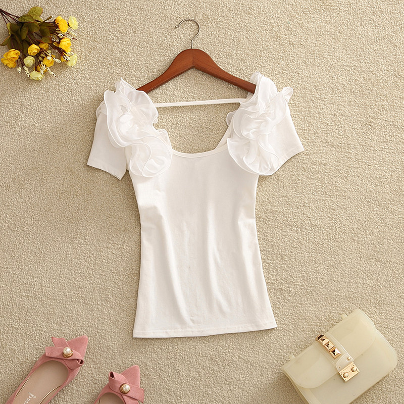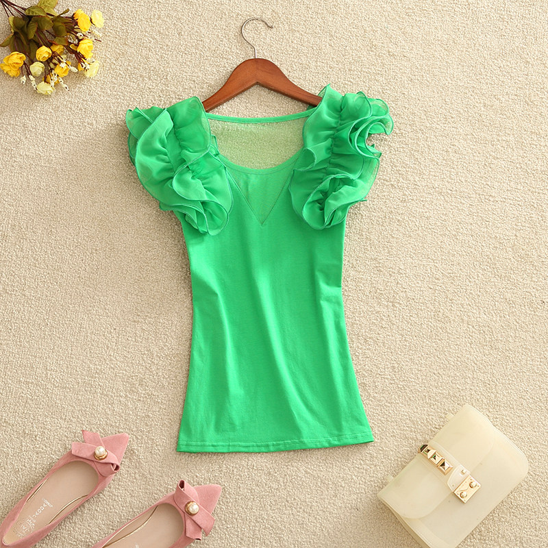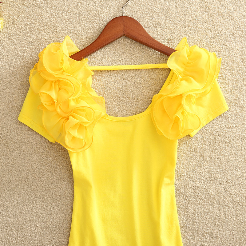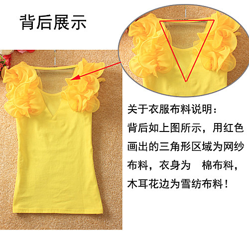 材質:衣身棉面料,花邊雪紡面料(有彈力)