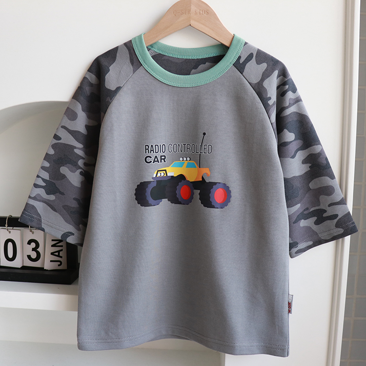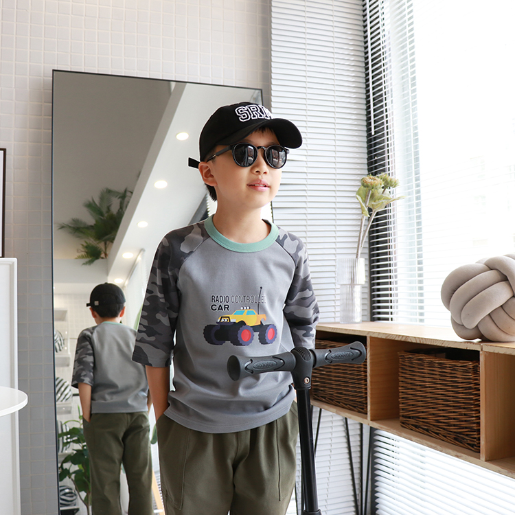 美媽們,男寶們偏愛的迷彩元素再出七分袖哈,