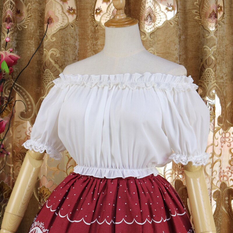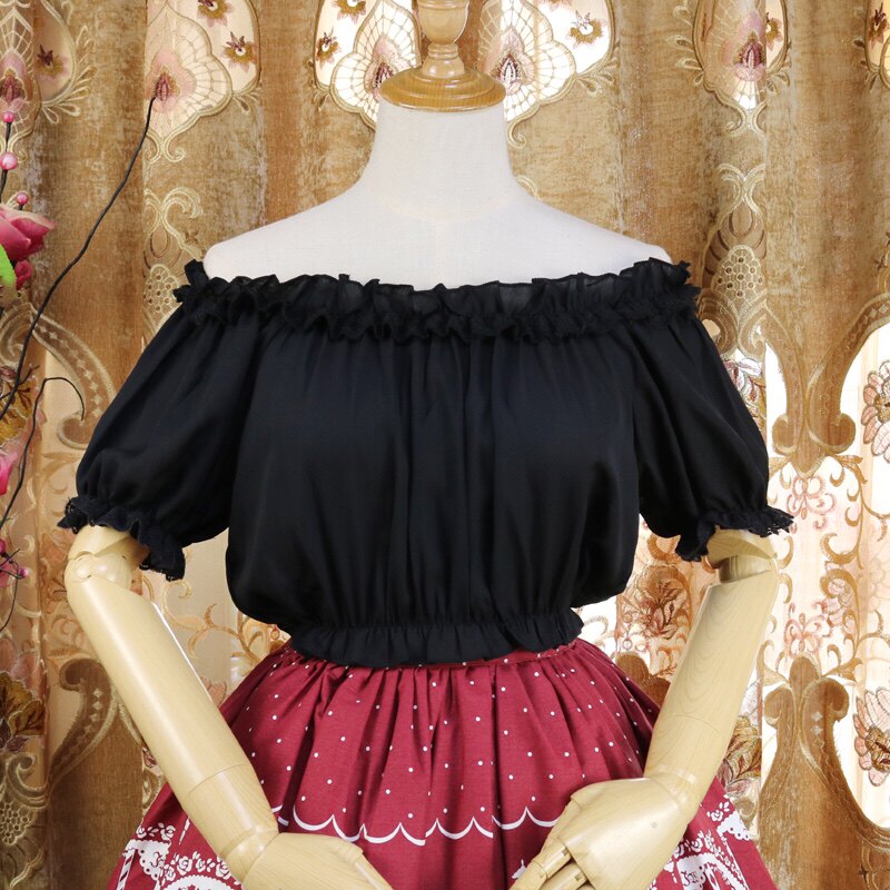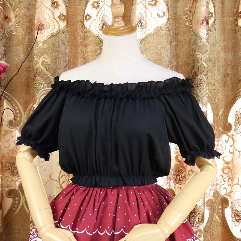 面料:雪紡(透)均碼:胸圍100以內可以穿,衣長32左右正常穿圓領,也可一字領露肩(一字肩只適合靜態拍照,抬手或是大動作會回縮)不同批次小內搭蕾絲花紋會有所不同,介意者慎拍 均碼款式甜美,很好搭衣服哦。