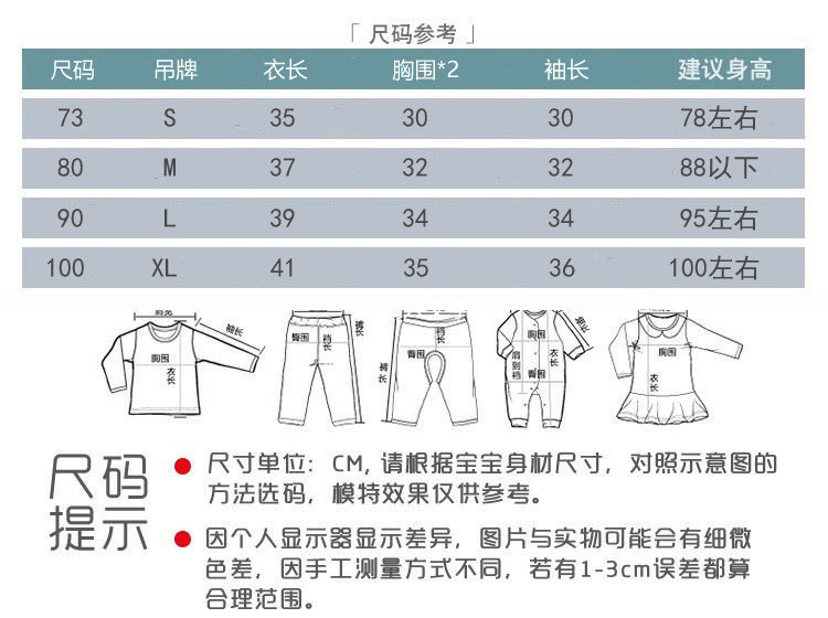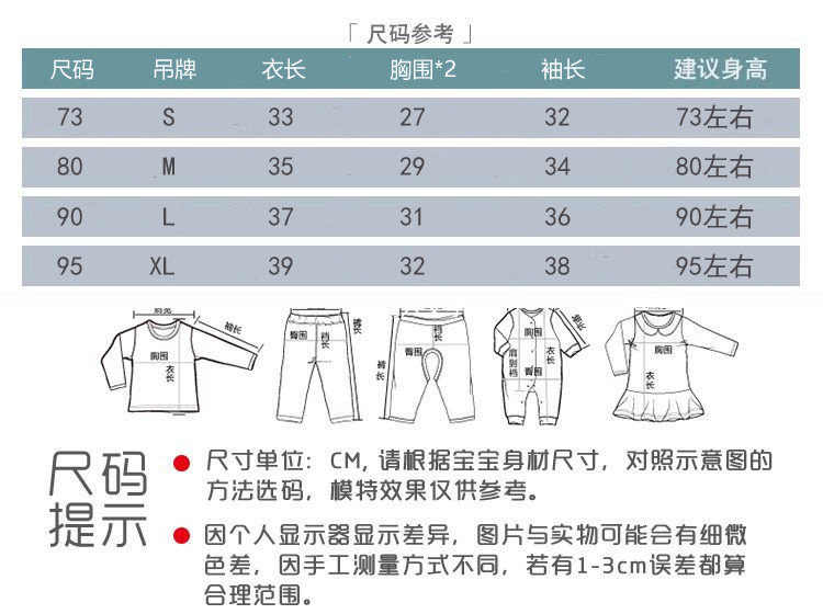 條紋熊開衫 針織棉73/S;衣長33 胸圍28*2 袖長28 建議身高66-7380/M;衣長35 胸圍29*2 袖長29 建議身高73-8090/L;衣長37 胸圍30*2 袖長30 建議身高80-9095/XL;衣長39 胸圍32*2 袖長32 建議身高90-95以上尺寸均為手工測量,1-3cm誤差,純屬正常,僅供參考