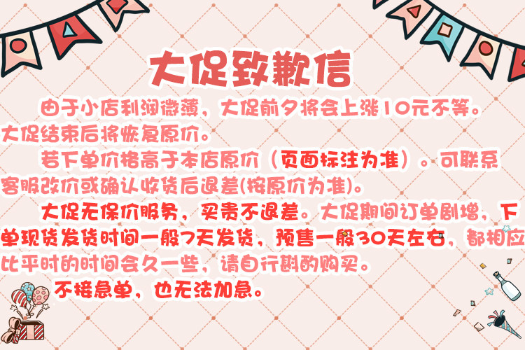 - 本人了解並接受海外代購的特殊性,並確認不會因規則中所列條款(包括但不限於:商品不可取消、折價券使用規則、不可控因素導致訂單取消等)而要求商家賠償或補償。