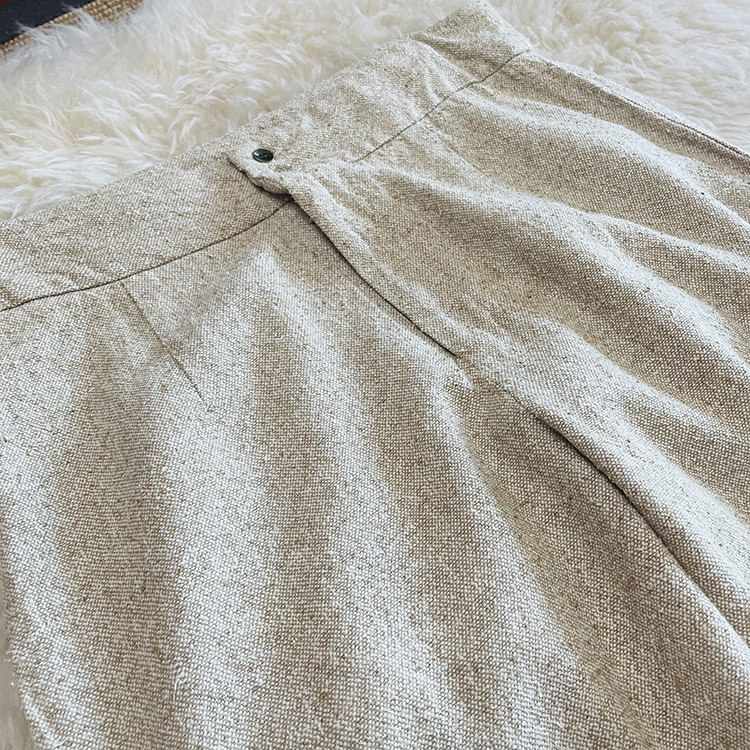 牛貨,高端柞蠶絲的料子,比桑蠶絲都貴,真絲里低調的奢華那種料子,看似極簡,卻有貴族氣質,廠家說這種柞蠶絲是非物質文化遺產,非常稀有,現在幾乎絕跡了,一米料子就200-500元成本,一條褲子1.5米,再加上做工,自己腦補一下多少錢