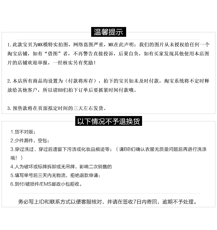 為避免法律糾紛及罰款,請勿隨意或為了拒收而點選“申報不符”。報關行是依據您的訂單進行申報,若消費者故意點選申報不符,將由消費者自行負擔法律責任。