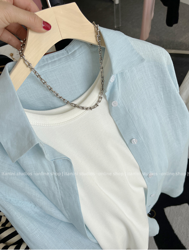 TIPS:這里是我的廢話哈哈哈 因為最近我聽到有些小姐妹說穿了亞麻襯衫后感覺皺 在這里要重點說下,亞麻是會皺的!!!! 只要是亞麻的穿著后都會形成自然的褶皺感 這個是亞麻的天然特性!! 之前穿過亞麻的應該會明白我說的! 如果平時穿的麻襯衫不皺,那要仔細看下成份了!