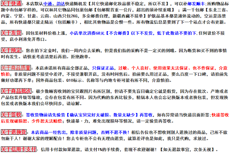 訂單達到免運條件後,運費將涵蓋關稅及5公斤以內包裹的基本運費。若包裹最終稱重超過5公斤,超重部分將依據集運倉運費計算公告(https://m.bcatlogistics.com/single?id=115)依照材積重量加收運費。客服人員將在收到加收運費通知後與您聯繫。若於收到收費通知D+5日內無法聯繫上您或未得到回覆,訂單將直接取消,包裹將進行逆物流退回廠商。此外,消費者需承擔大陸端的往返運費(約新台幣200至2000元不等)。若未支付逆物流費用,將無法進行退款作業。建議您在下單前先與商家客服確認運費預估金額。 - 「全球購折價券及運費折抵券,為消費者免費領取,視為附條件使用的優惠券,僅限訂單成功完成後生效。若因斷貨、缺貨等不可控因素導致訂單取消,折價券/運費折抵券因交易未成立而失效,恕不返還。消費者領取及使用本折價券,即視為同意相關活動規則及限制。」
