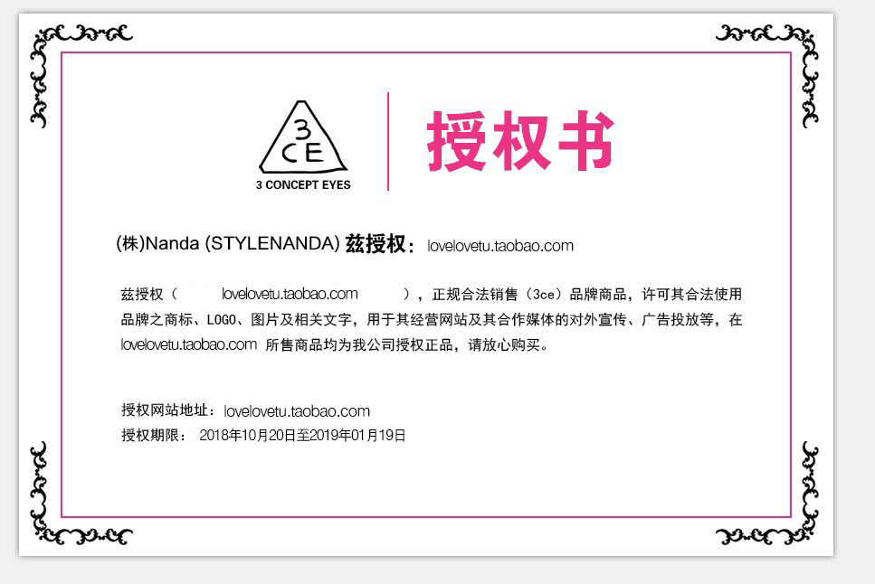 不放心的可以找客服要我們家3ce品牌訂貨的出庫單