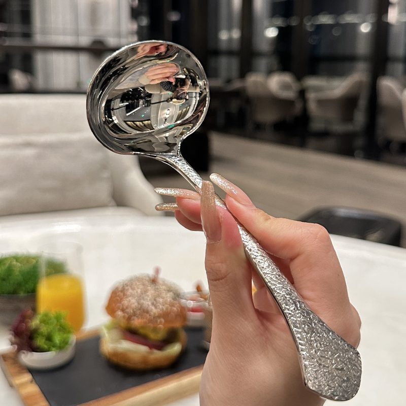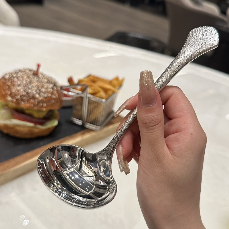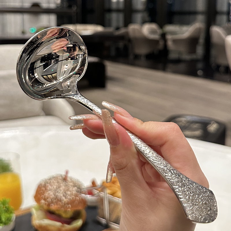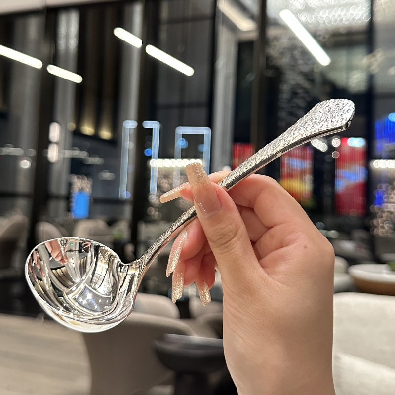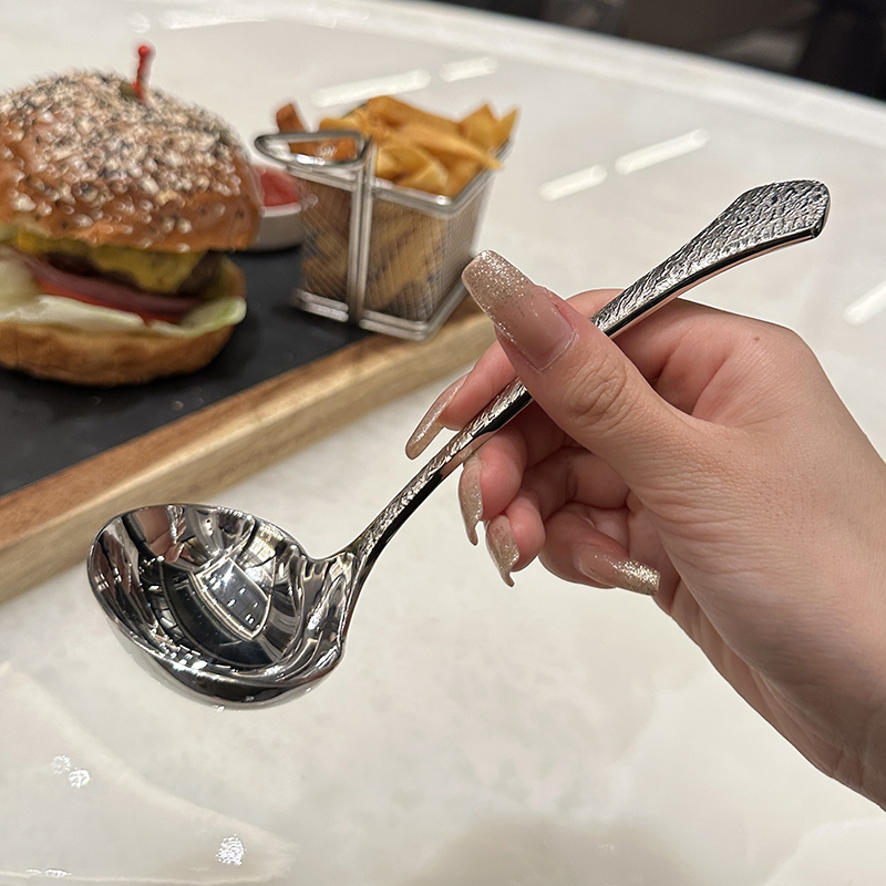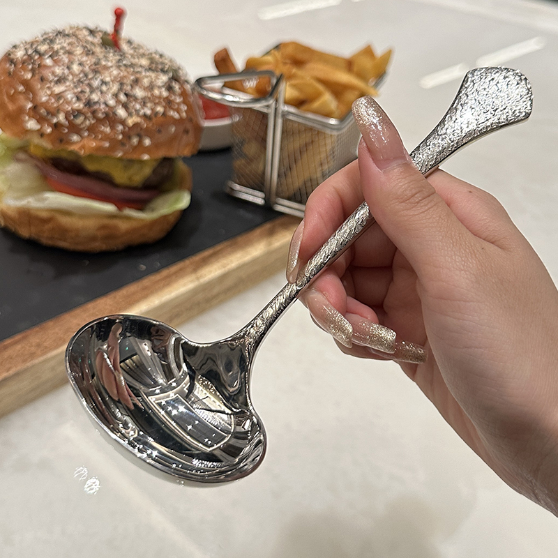 巖石紋短柄小湯勺加厚316喝湯勺喝粥勺子西餐小湯殼