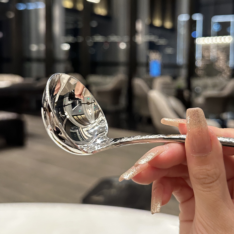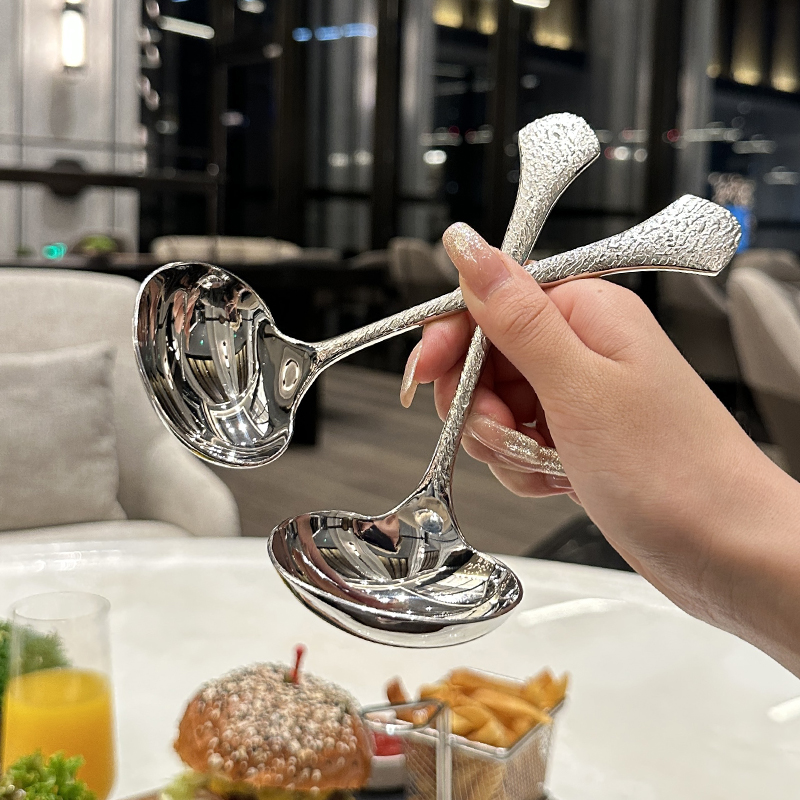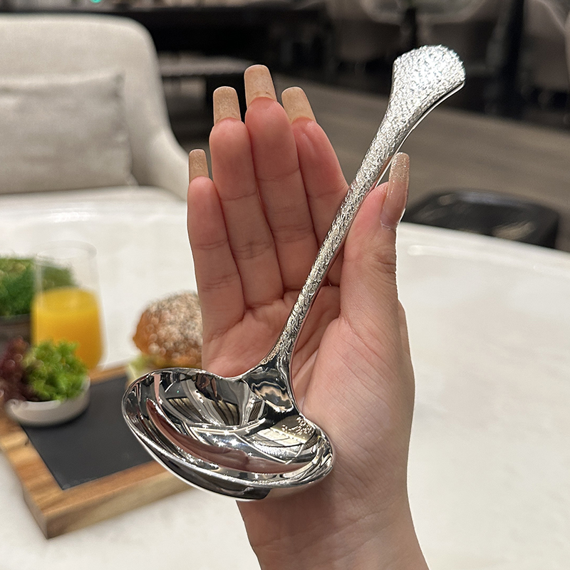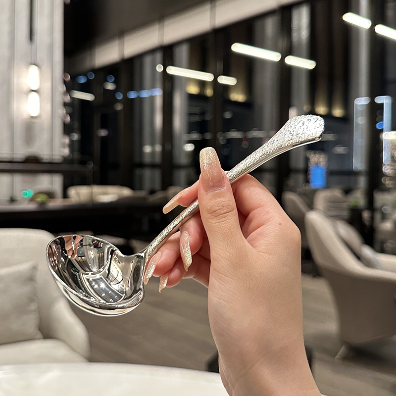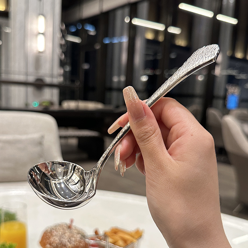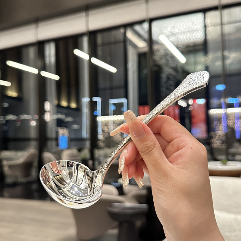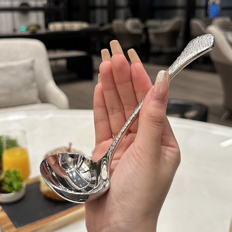 巖石紋短柄小湯勺加厚316喝湯勺喝粥勺子西餐小湯殼