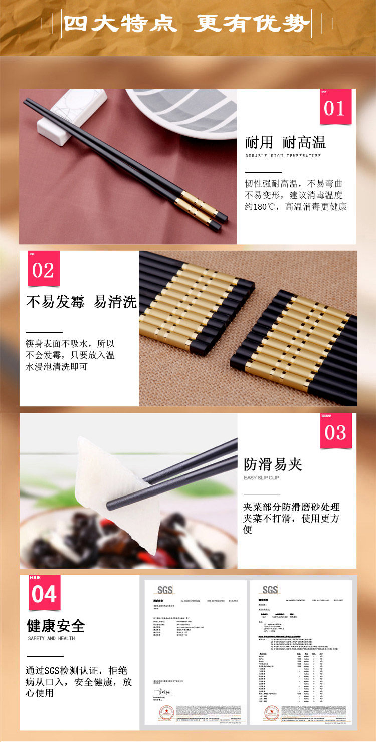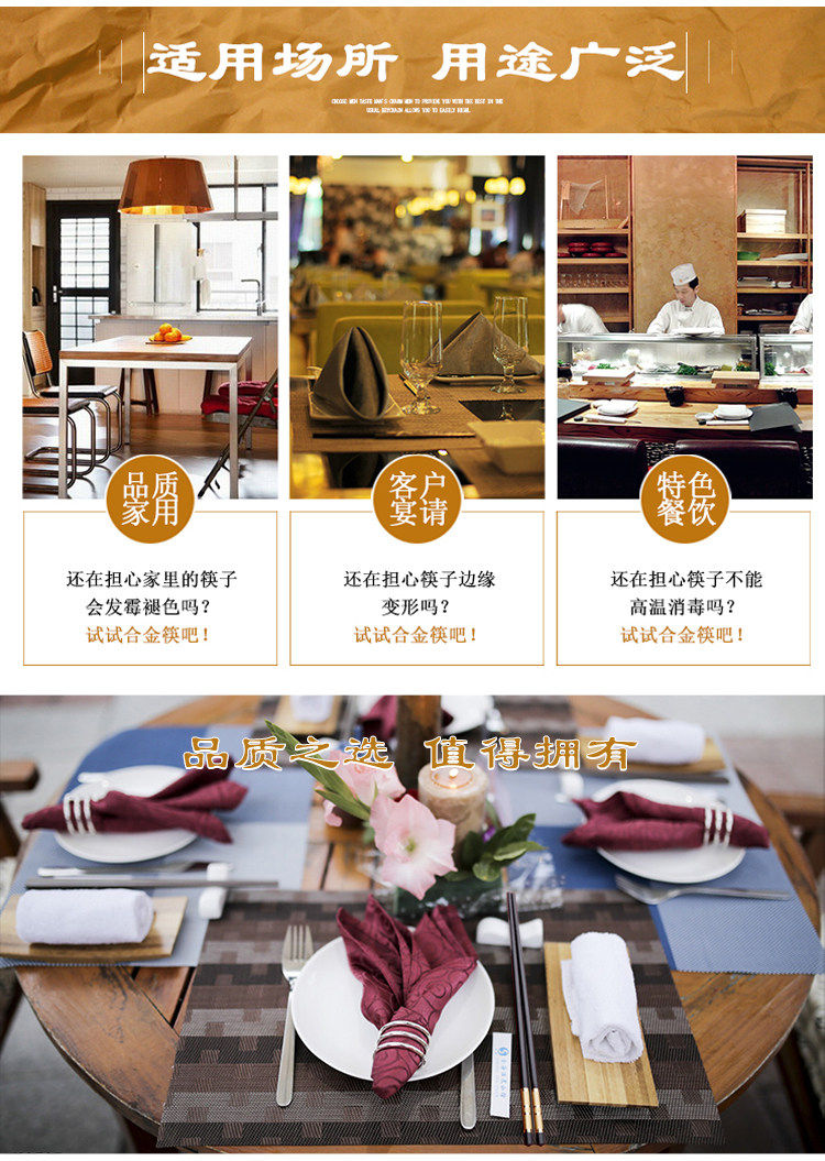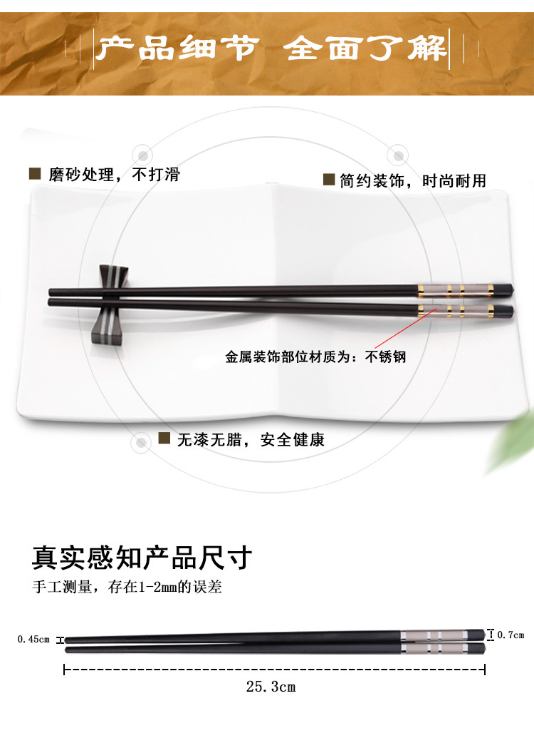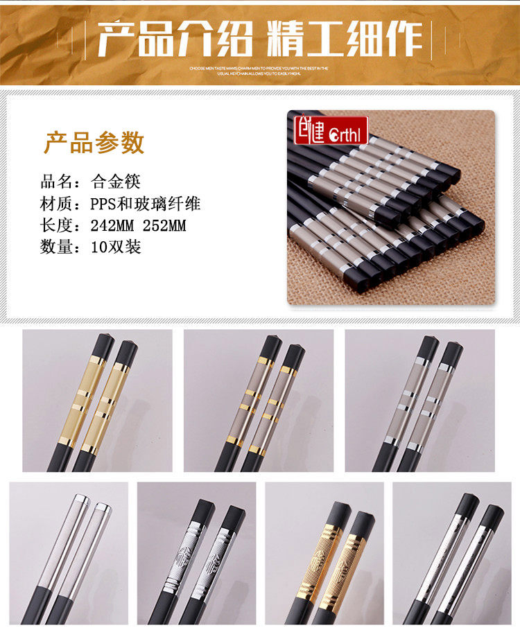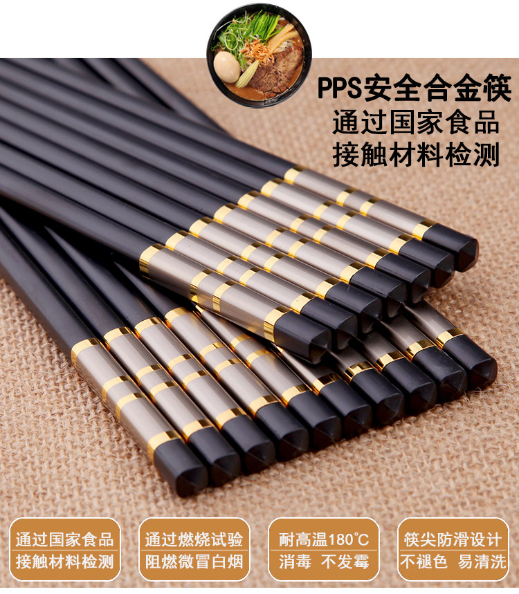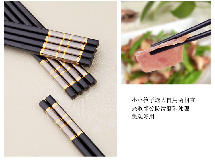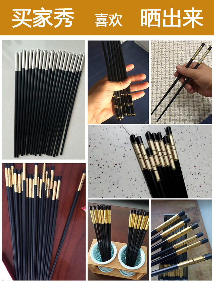 家庭家用防滑酒店合金筷子快子套裝10雙20不銹鋼鐵非實木防霉竹