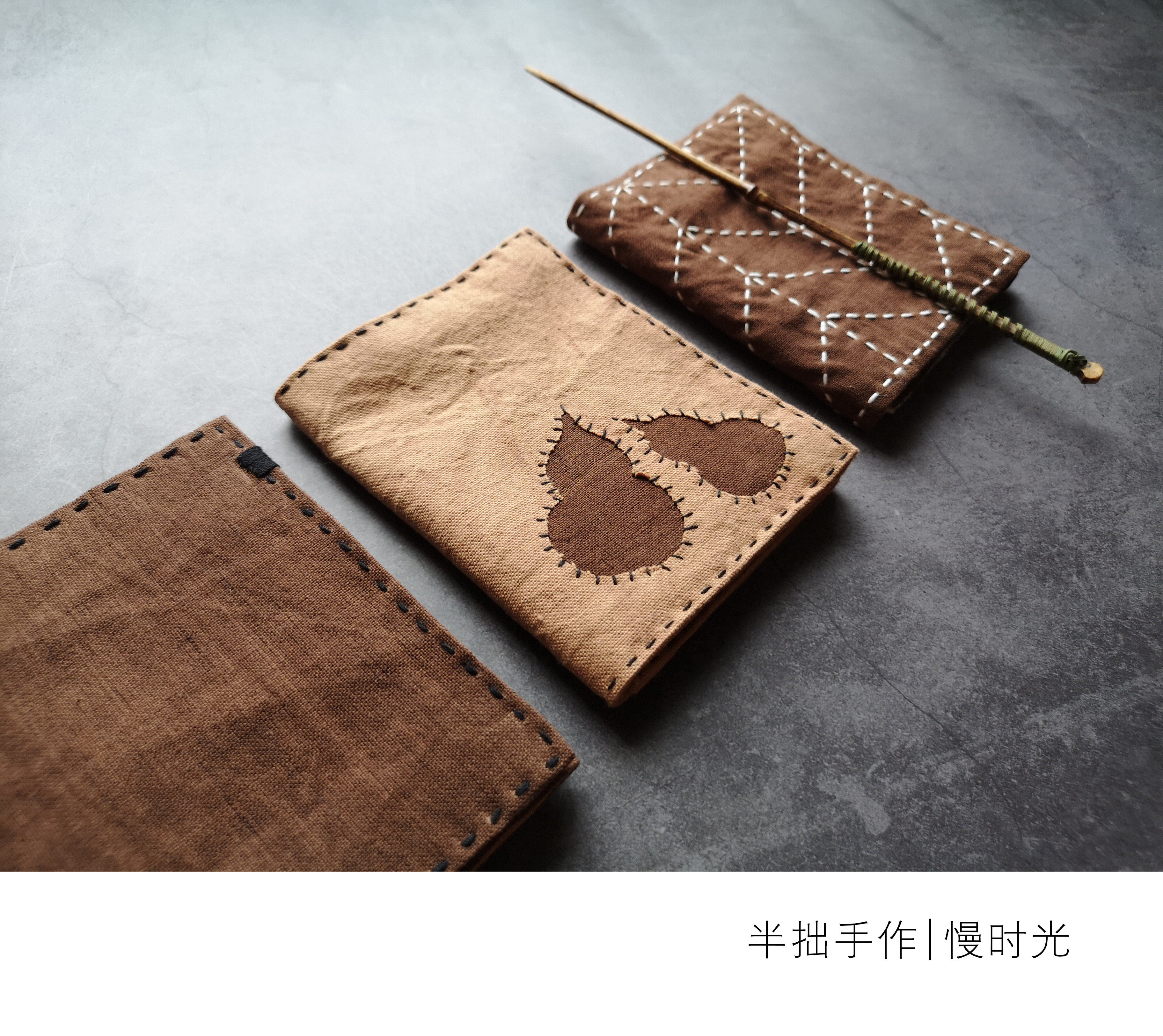 -------------三個款式,從左至右分別為:無事| 雙面柿染茶巾,正面為深色柿染布,反面淺色柿染布,可根據茶席色調決定用哪面。長樂|葫蘆款茶巾,用深色柿染布勾勒一對葫蘆,長樂安康之意。一針一線很費工夫,背面同正面為淺色柿染布,亦可雙面使用。如意|是本店主打款,搭配如意柿染茶席已經售出很多,樹形紋是日式刺子繡的傳統紋樣, 經典耐看。