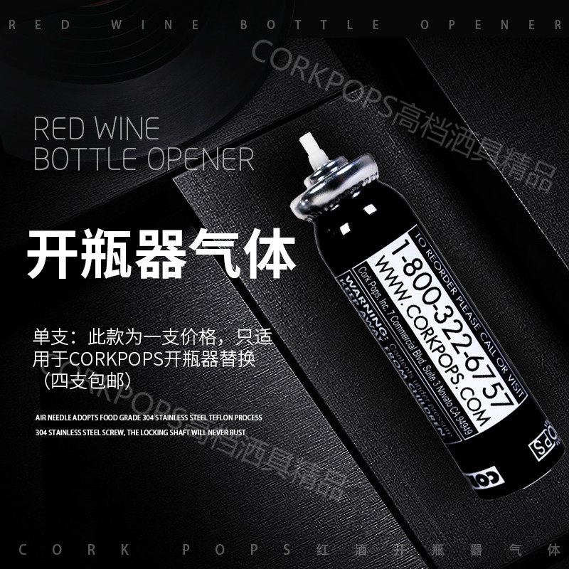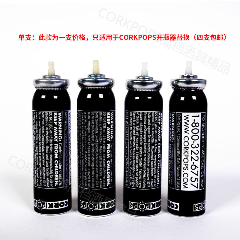 氣壓開瓶器之專用替換裝,是原裝正品,瓶內罐裝壓縮惰性氮氣,無色無味,更無爆炸之隱患。產品通過美國及歐盟食品安全嚴格測試并暢銷其紅酒酒具高端市場數十年。
