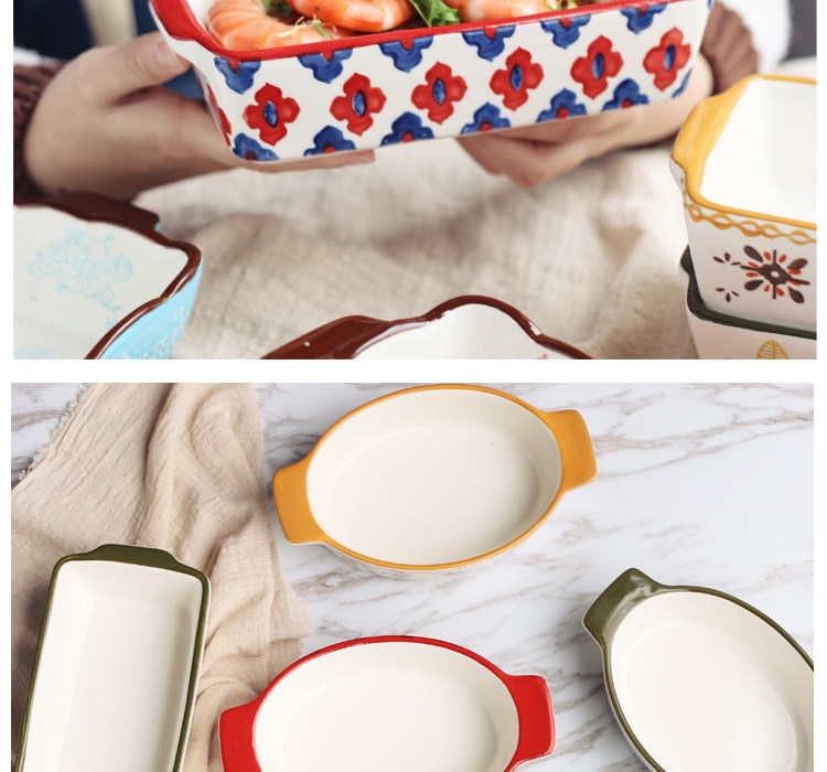 【店家推薦】:一人份量的烘焙盤子,釉下彩制作,顏色非常鮮艷,裝放食物非常好看,當做早餐盤,家用菜盤都是不錯的選擇哦。盤子均是釉下彩手繪工藝,高溫也不會產生對人體有害的物質,安全問題大可放心,適用烤箱、微波爐。(PS:餐具由手工繪制,彩繪顏色會有些許不均勻,介意慎拍,請知悉)
