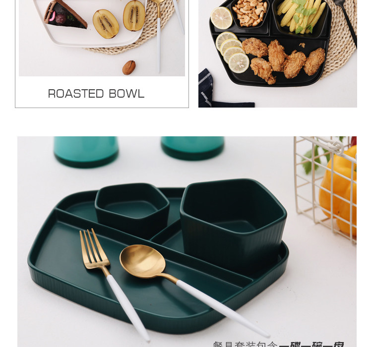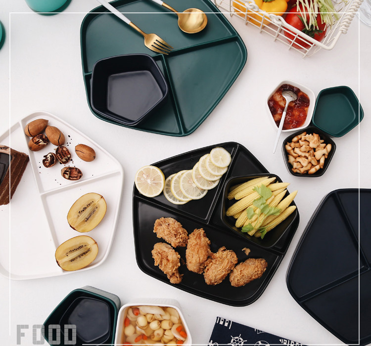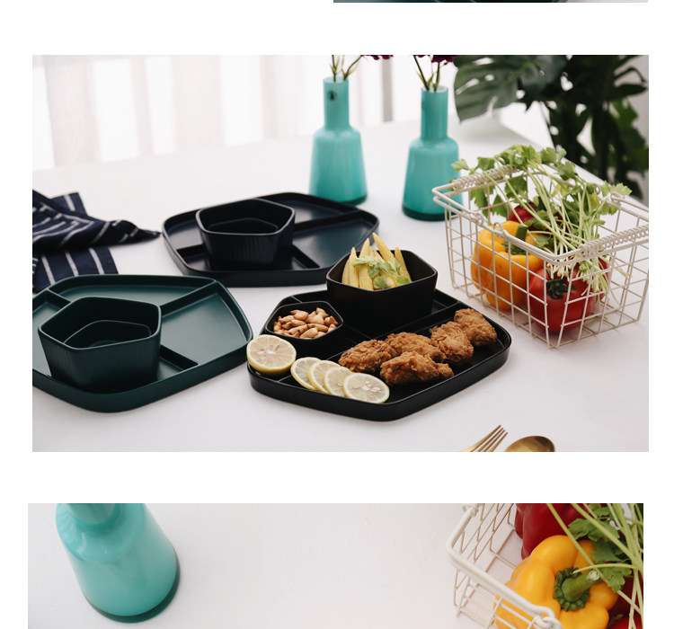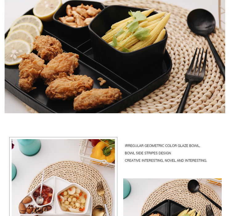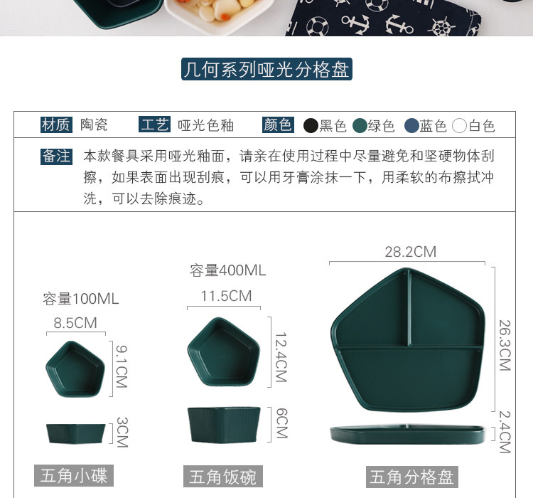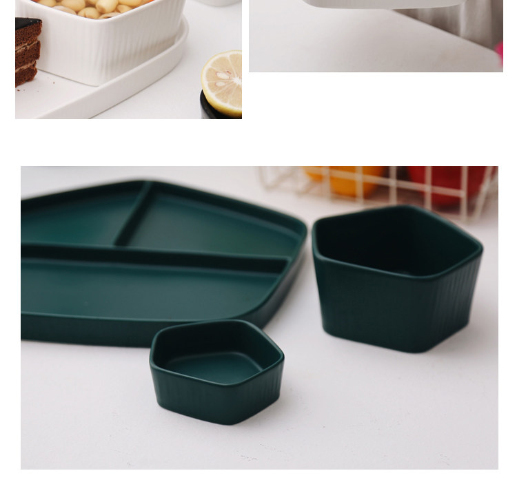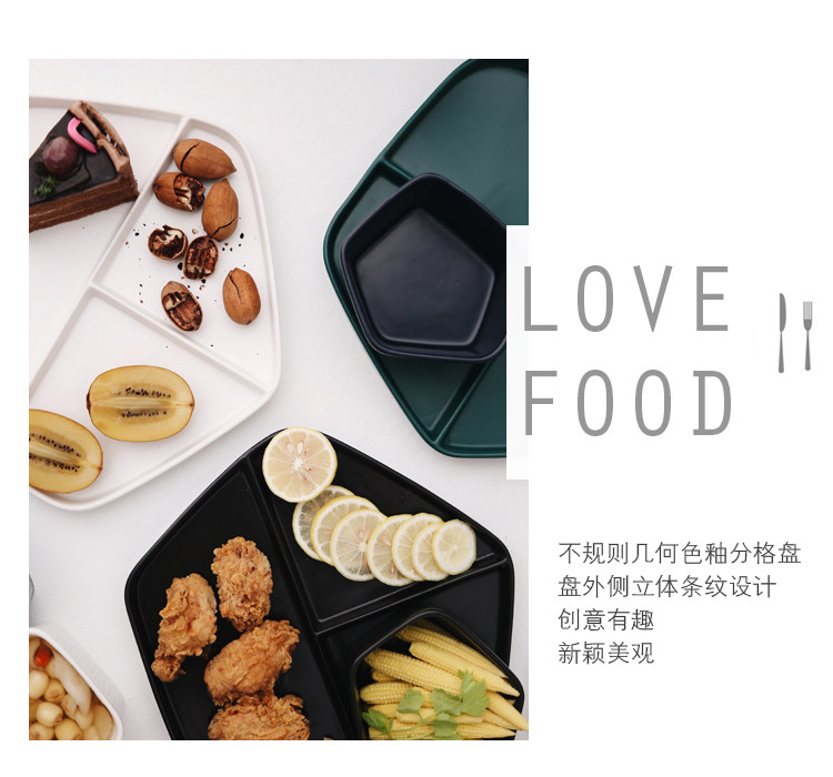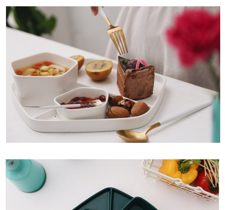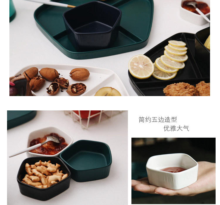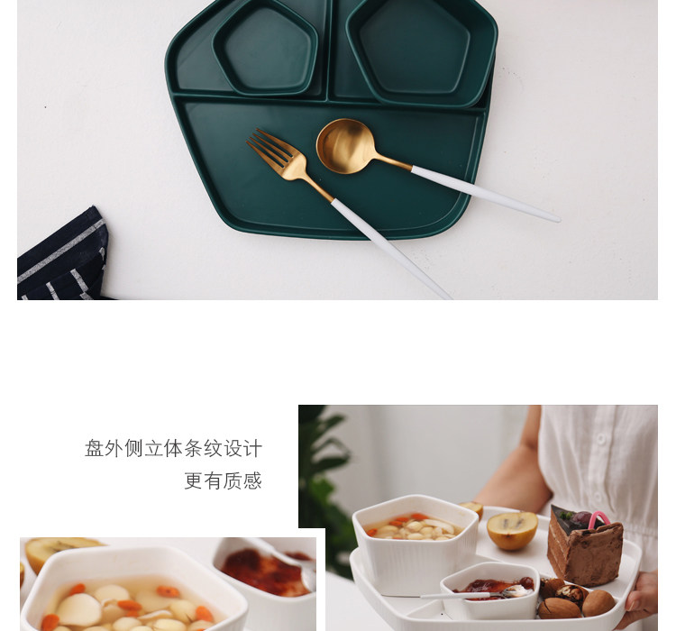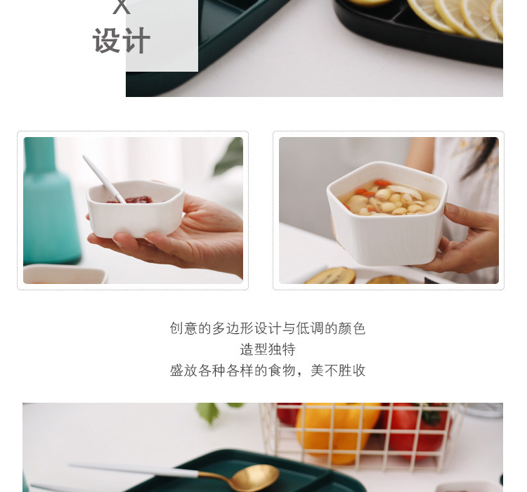 【店家推薦】:非常北歐風的一系列餐盤,釉面采用的是啞光色釉工藝,質感不錯,創意的幾何設計,器型簡約,擺放起來并不單調,擺拍也是很上鏡。作牛排盤子很不錯,盤子本身有一定的深度,家用也是蠻好的。這個系列里邊也有分格盤子器型,早餐搭配上個小碟子也是非常實用哦。