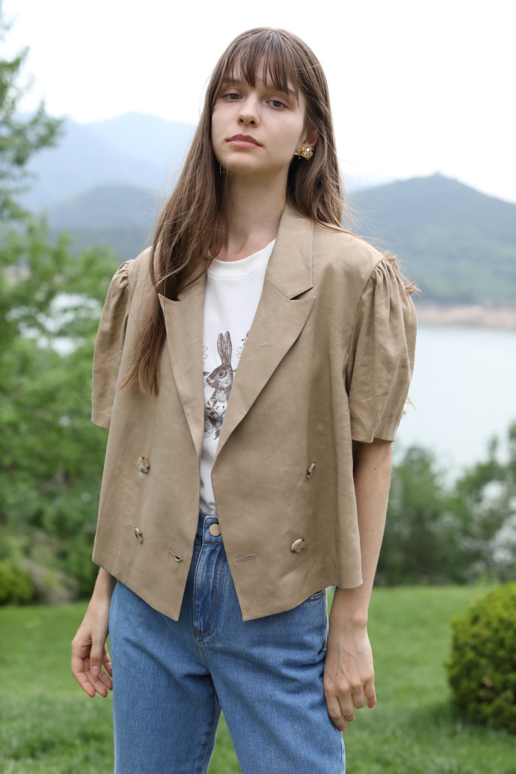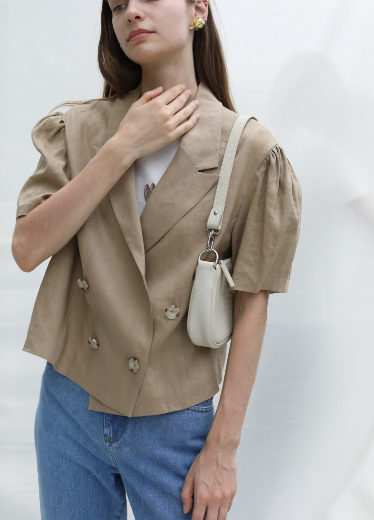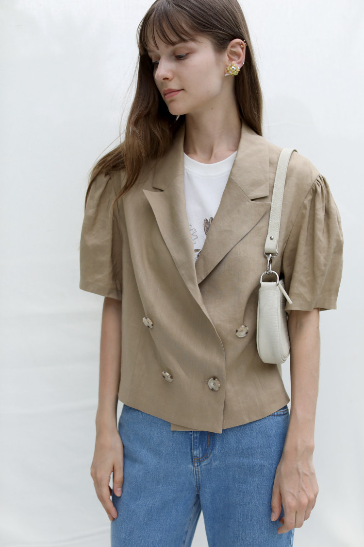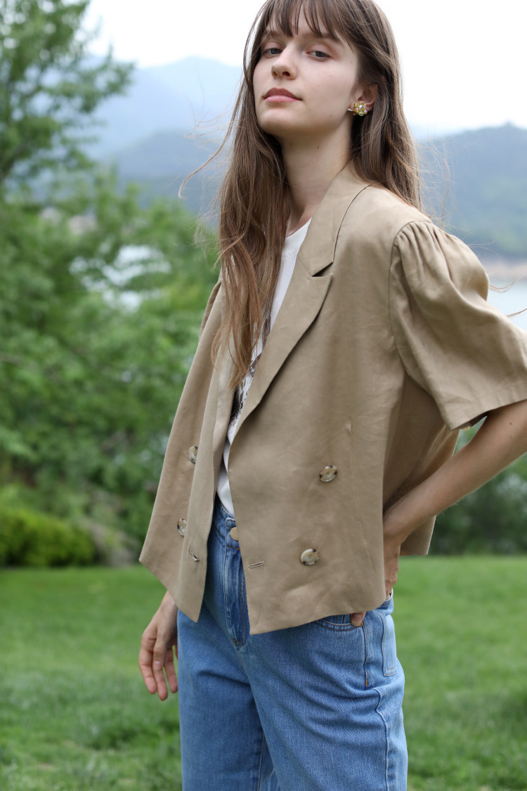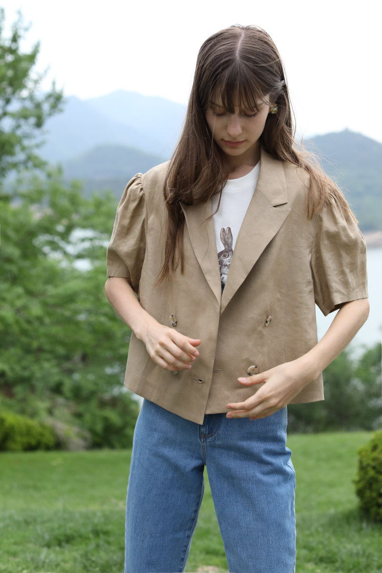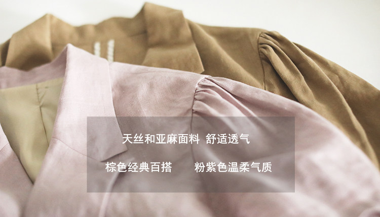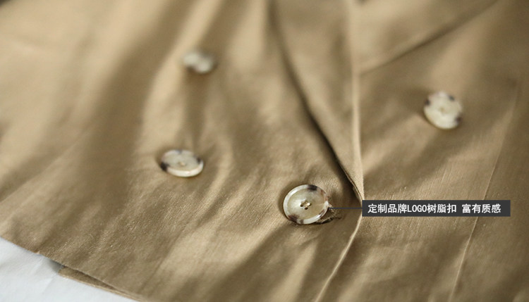 露褐亞麻采用的是環保尿素扣,紫藤亞麻采用的是100%天然河貝扣,全人絲里布包條