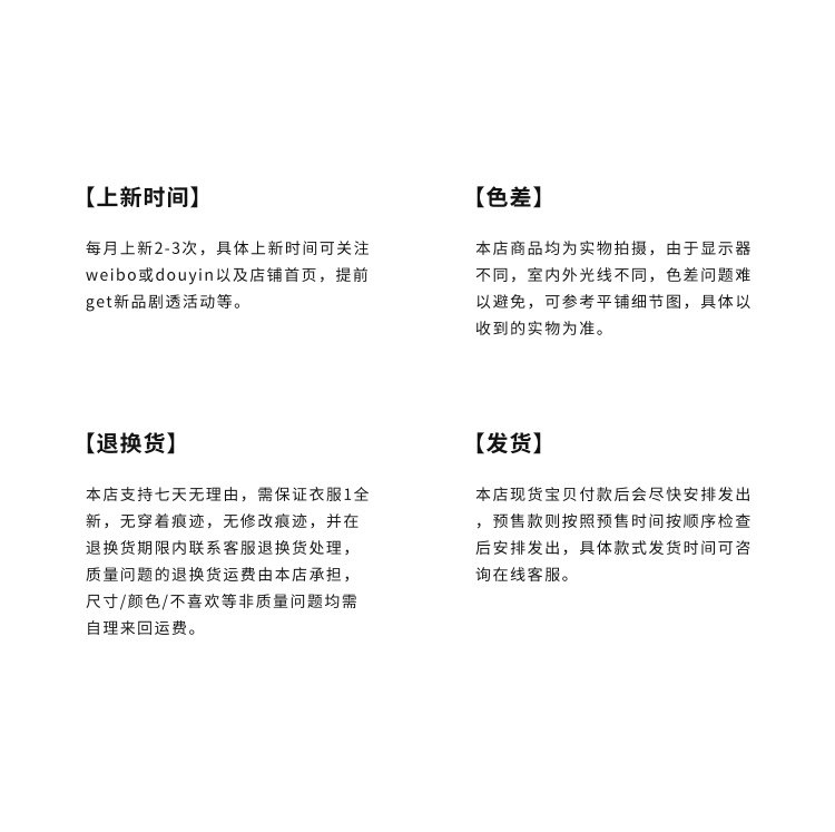 海外代購是依照消費者要求而提供協助購買商品之服務,係屬於「客製化給付」,依據《通訊交易解除權合理例外情事適用準則》規定不適用《消費者保護法第19條》鑑賞期規定。一旦訂單進入「已出貨」狀態,即無法取消訂單。收到商品後,若與預期不符,亦無法申請退貨或退款。 - 瑕疵商品退換貨規定