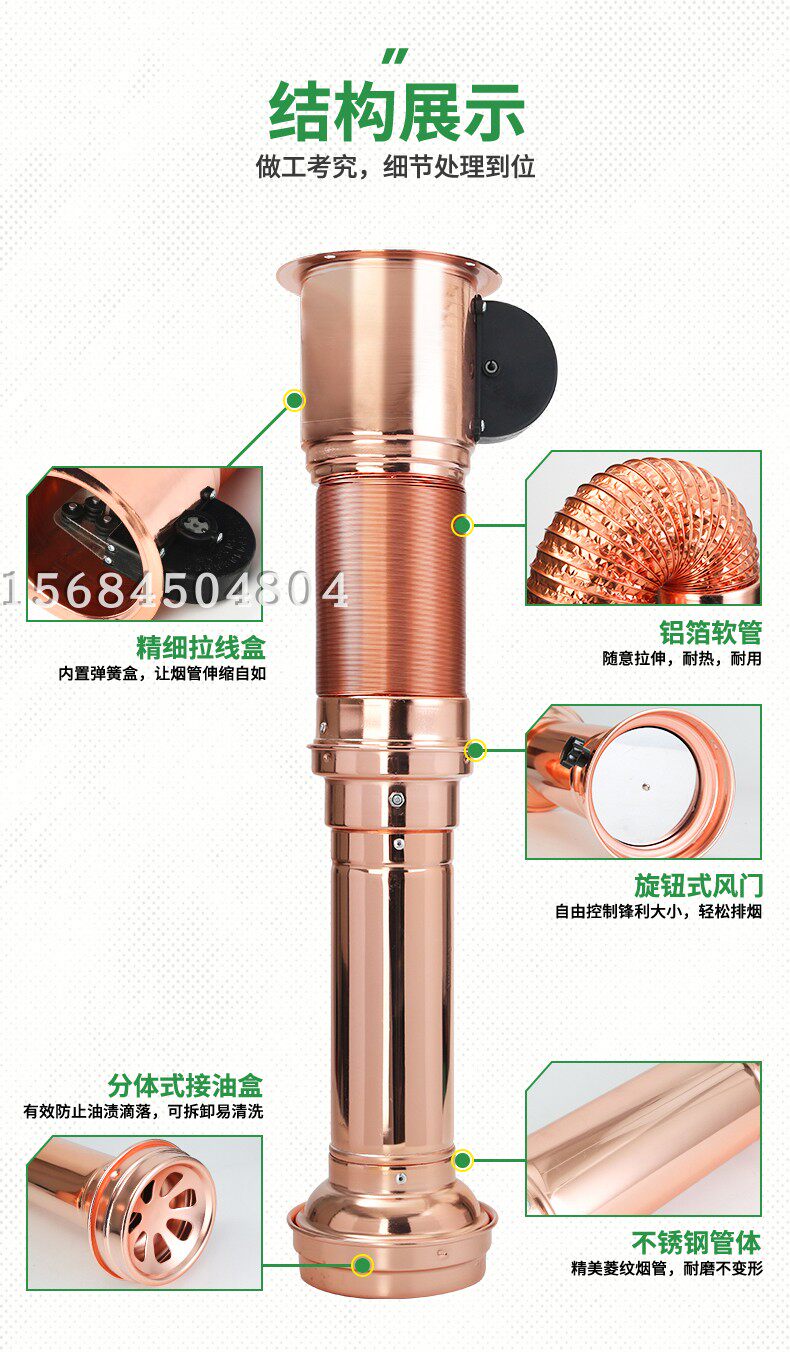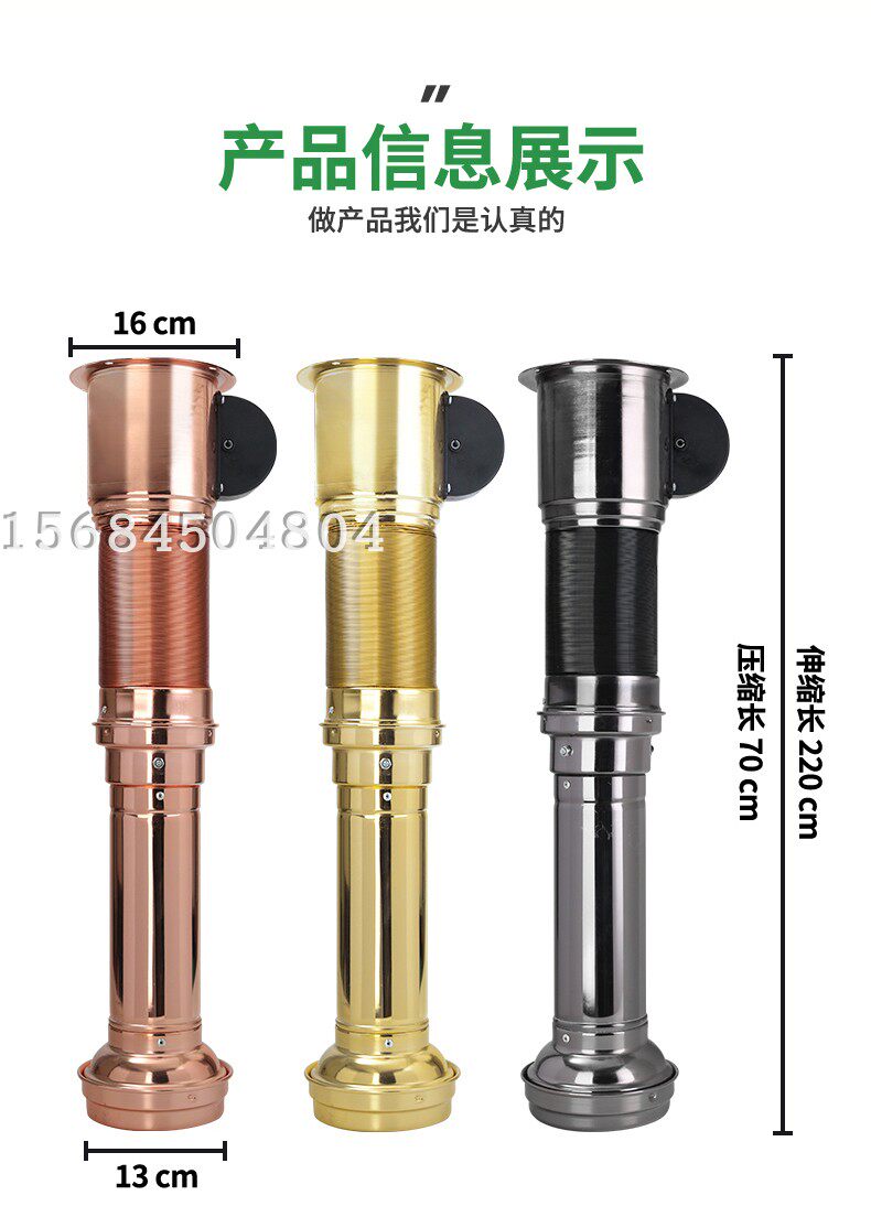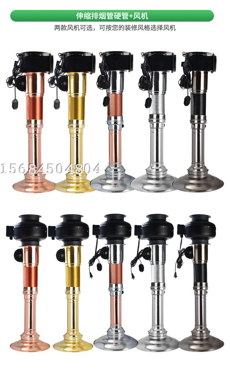 正常尺寸為沒拉伸前70cm,最長拉到2.2米,帶風機款的正常尺寸為沒拉伸縮前82cm,最長拉到2.3米。(煙管長度可以定做,如果需要定做加長或者縮短請聯系客服)