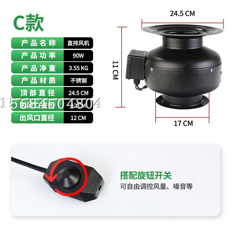 煙管配的風機是120w,為側出煙,購買風機的配送鋁箔軟管1米和卡扣1個。