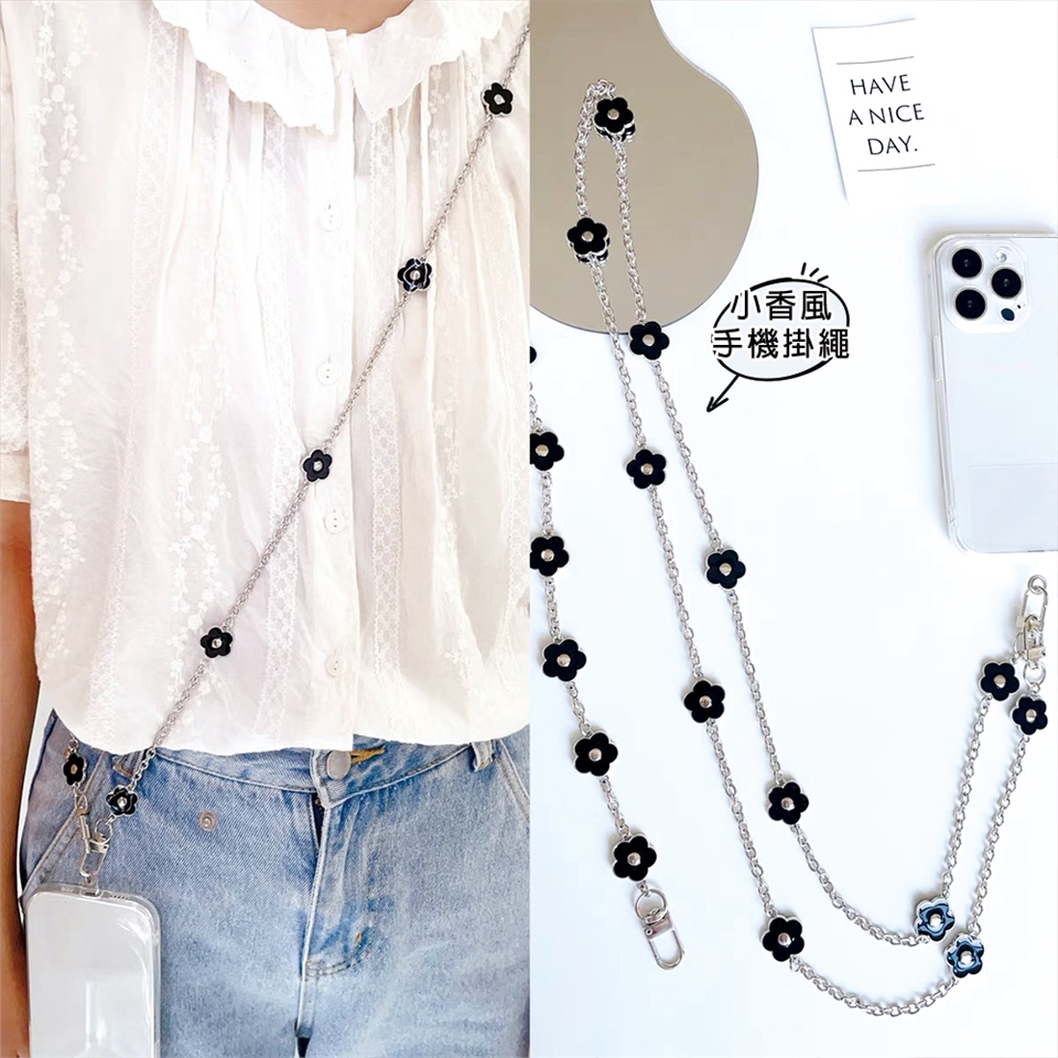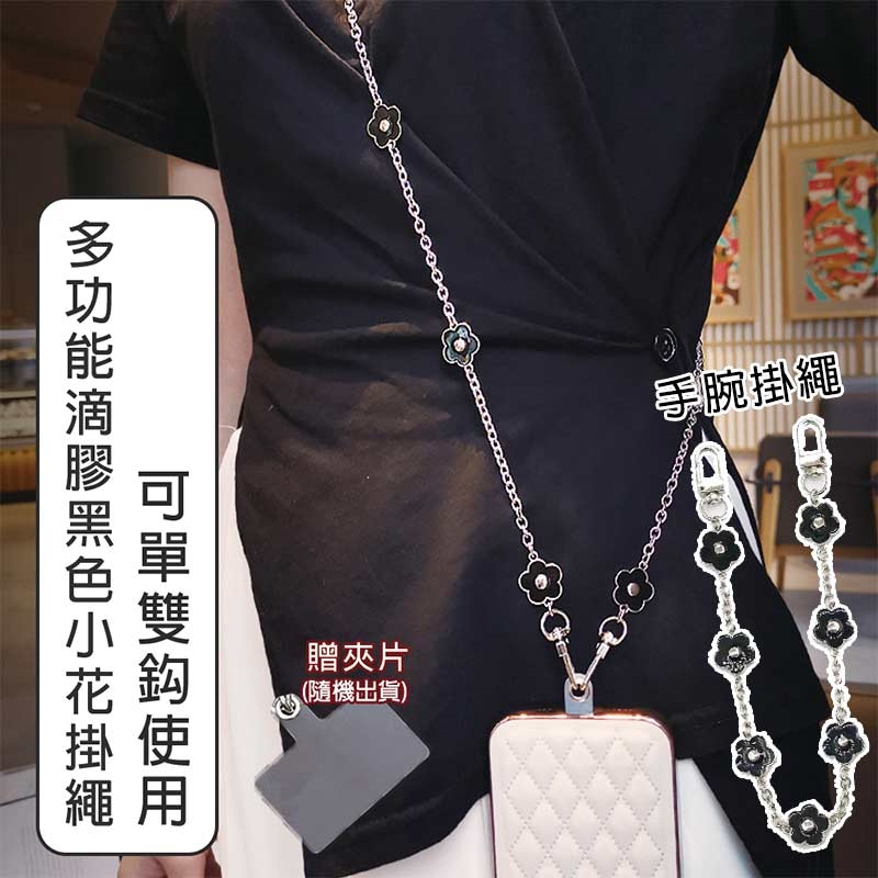 可單雙鈎滴膠黑色小花手腕掛繩
