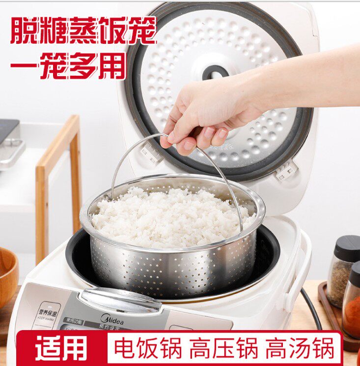 電飯鍋如果是平底的,選擇平的不帶支架的,蒸米的時候米飯和水平齊就行。