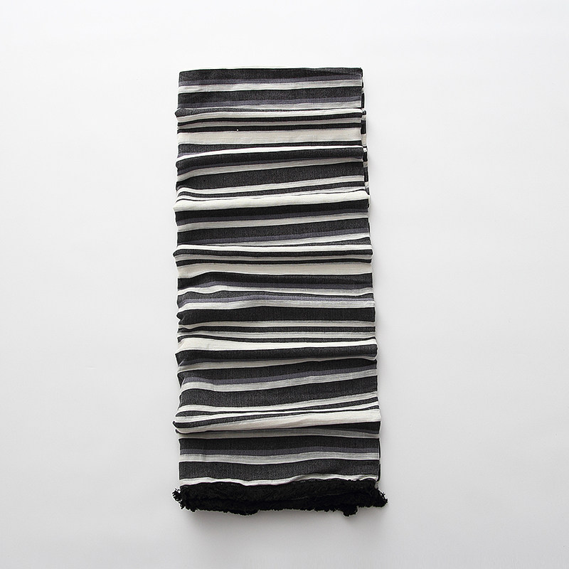 圍巾寬邊兩側有黑色棉線花邊,此款圍巾加寬設計,圍巾披肩兩用,時尚保暖,非常實用