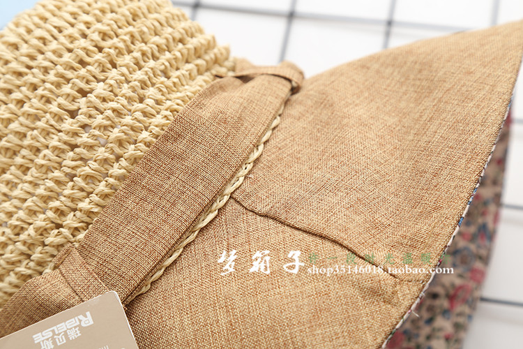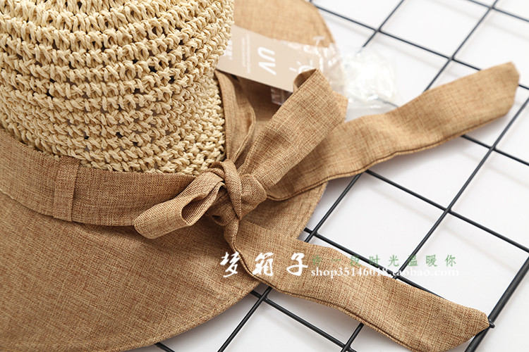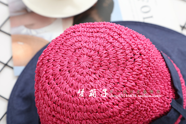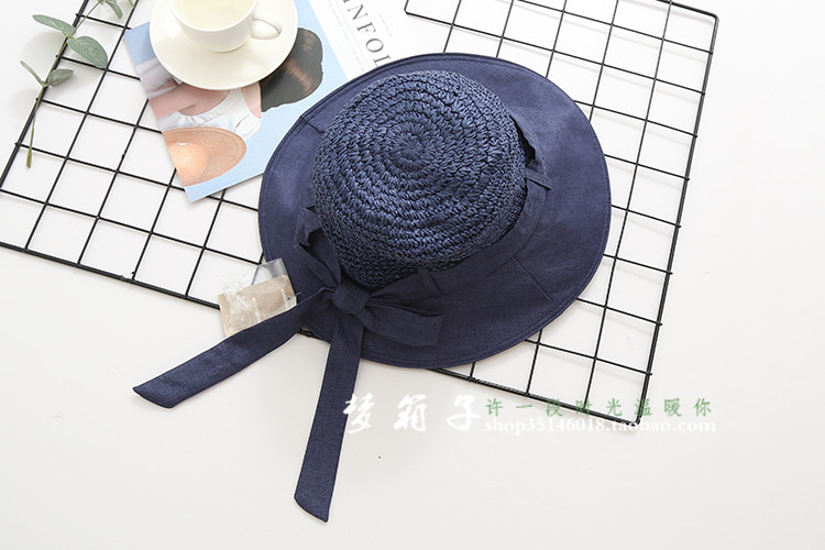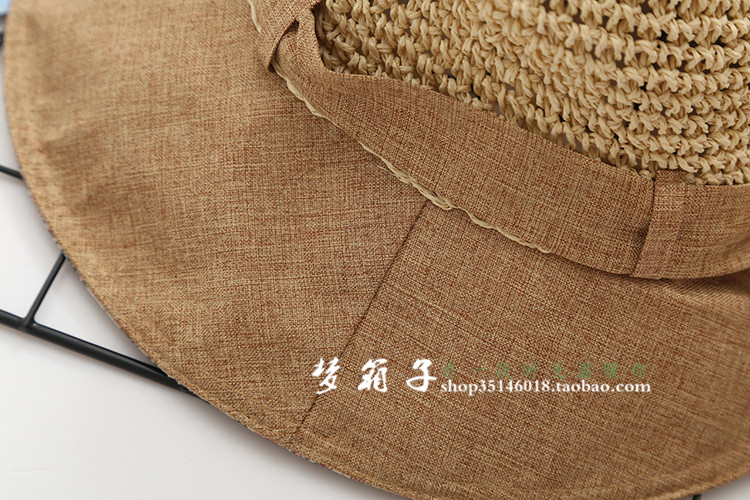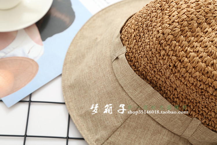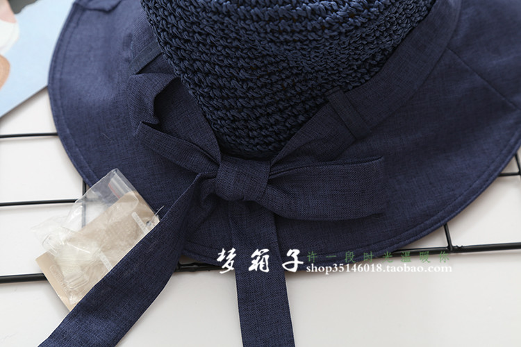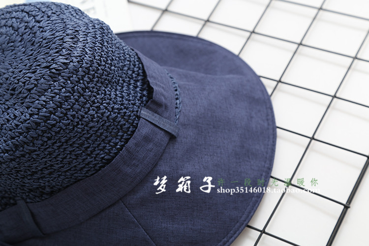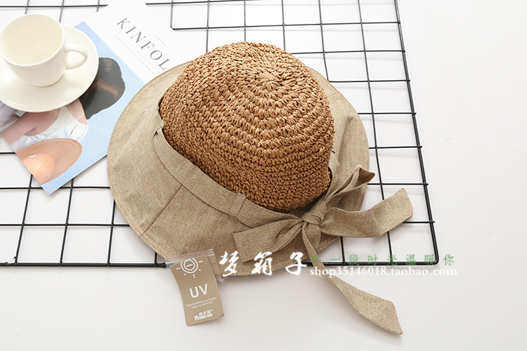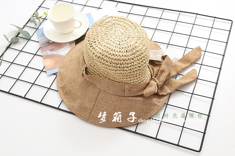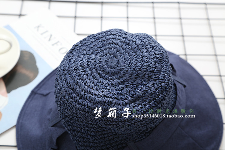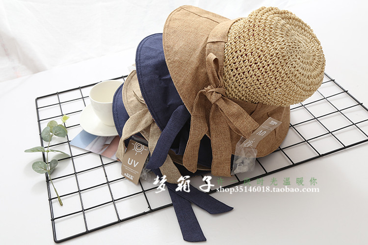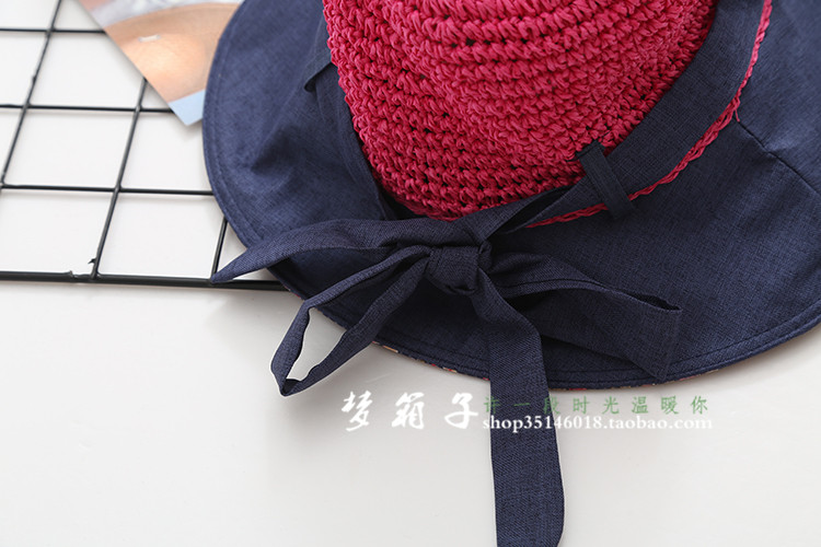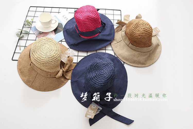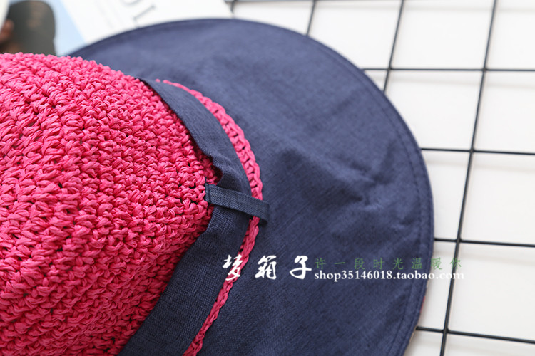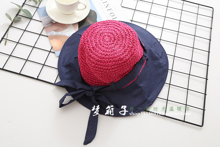 帆布拼接草編帽,蝴蝶結系帶,顏色大方美觀