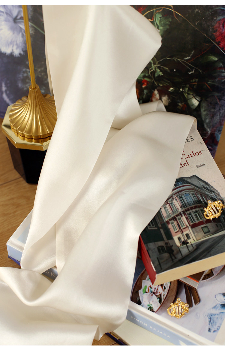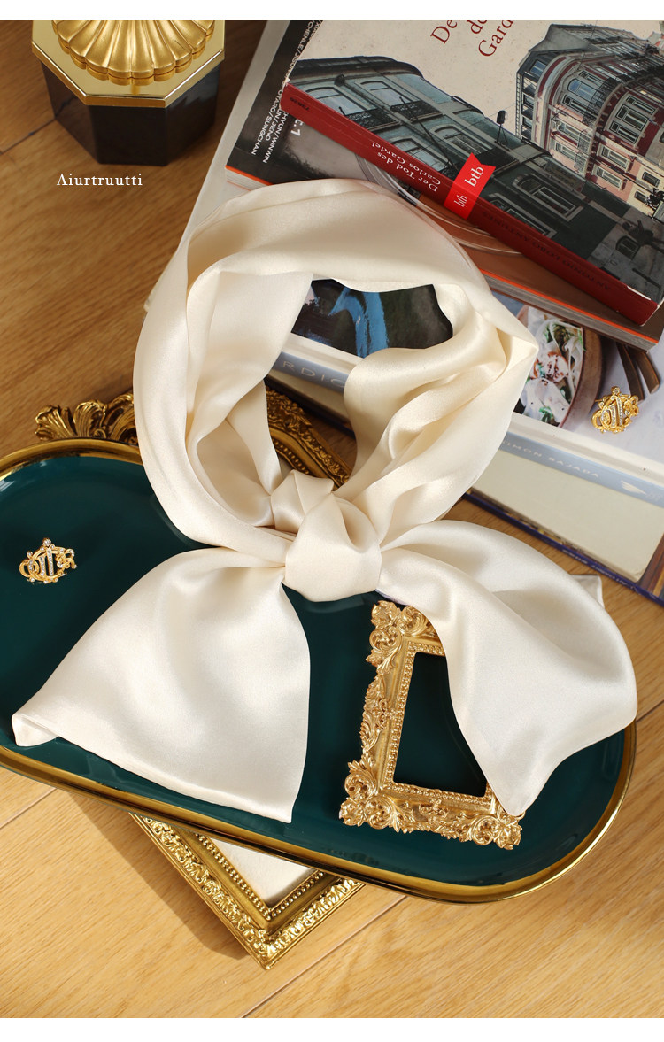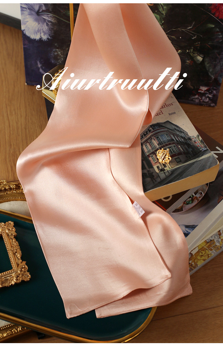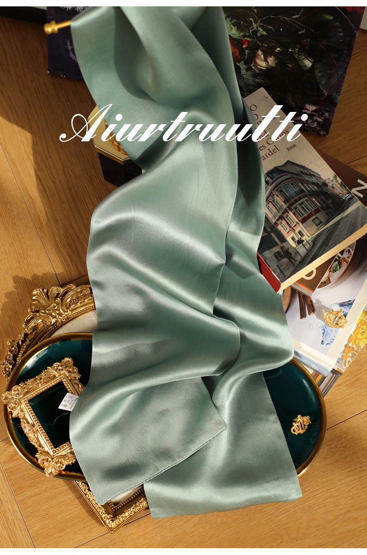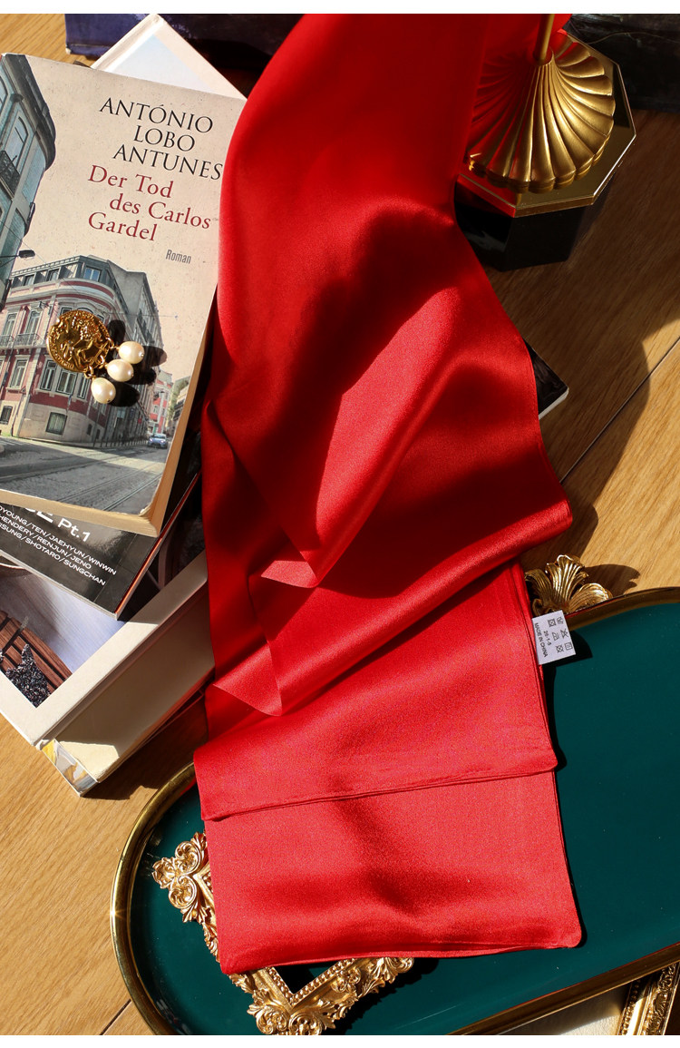 | 商品名稱: | 小眾設計 雙層重磅真絲緞面 大女主復古奢華絲巾披肩 純色小長巾 |