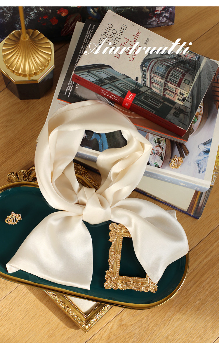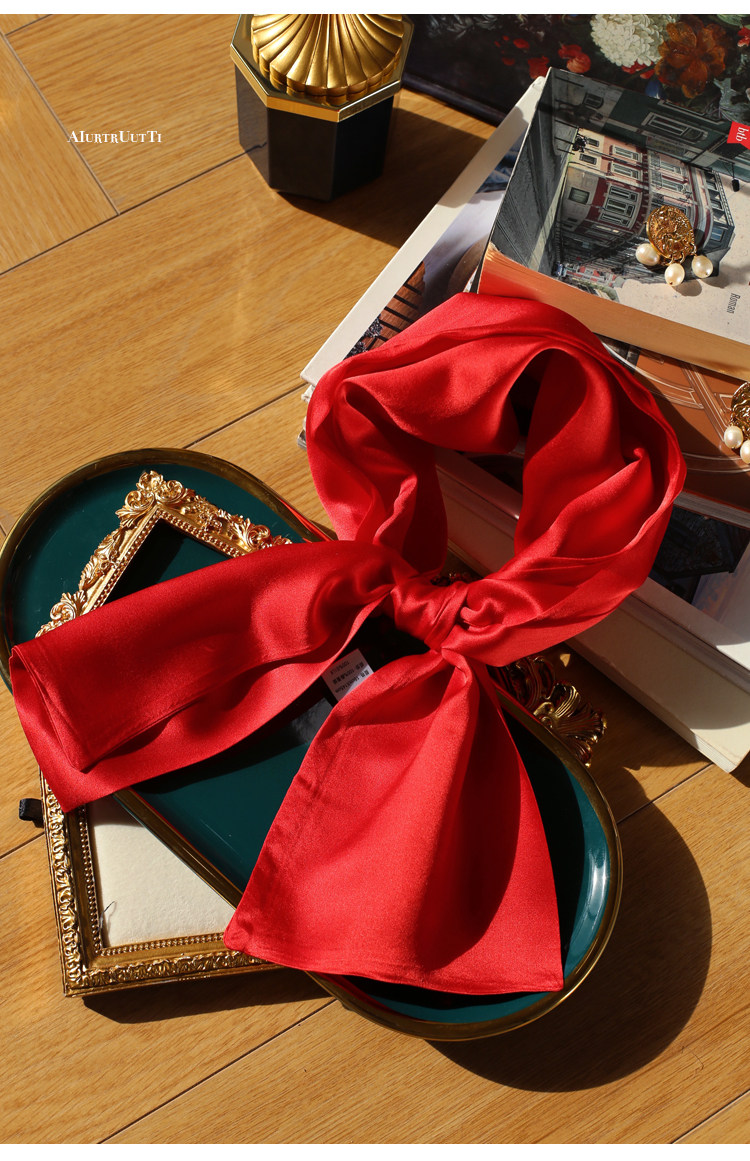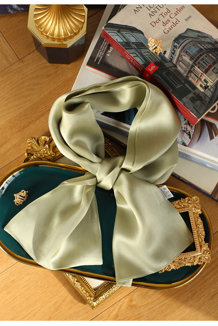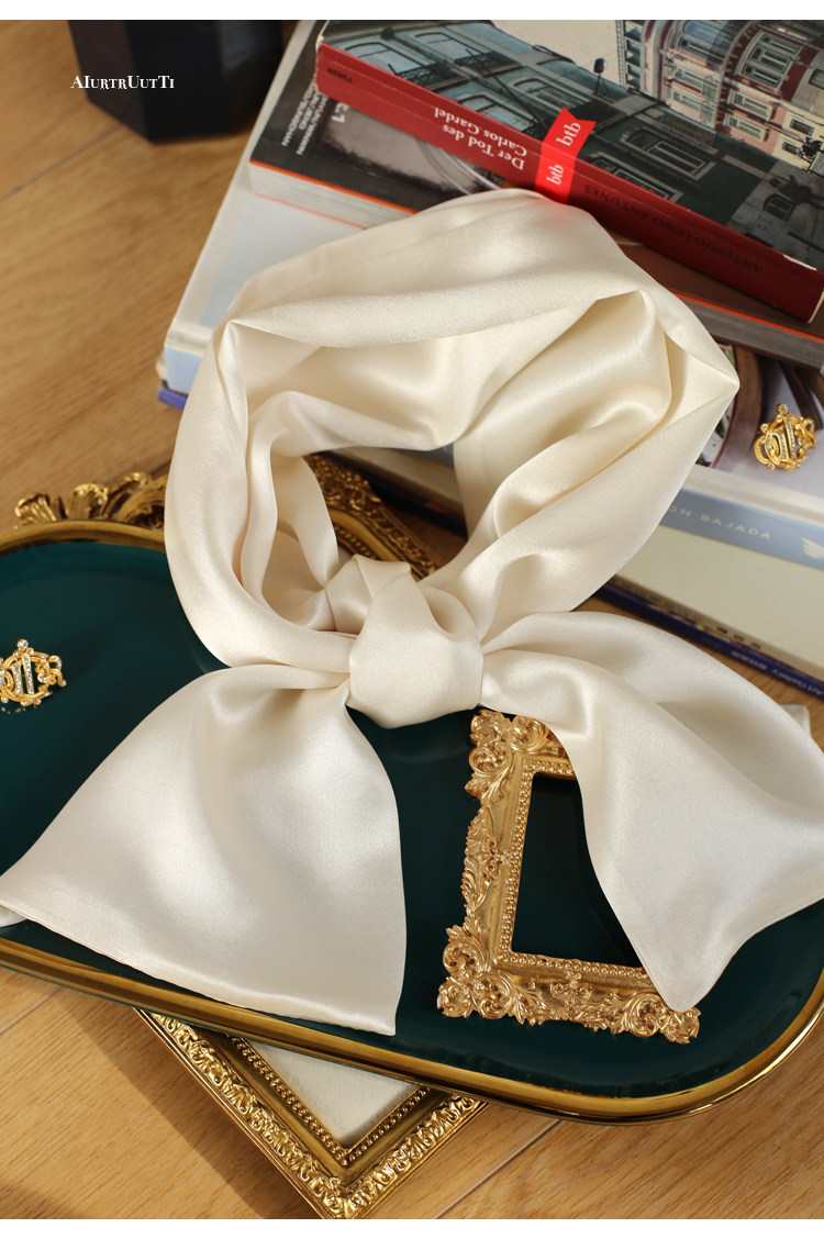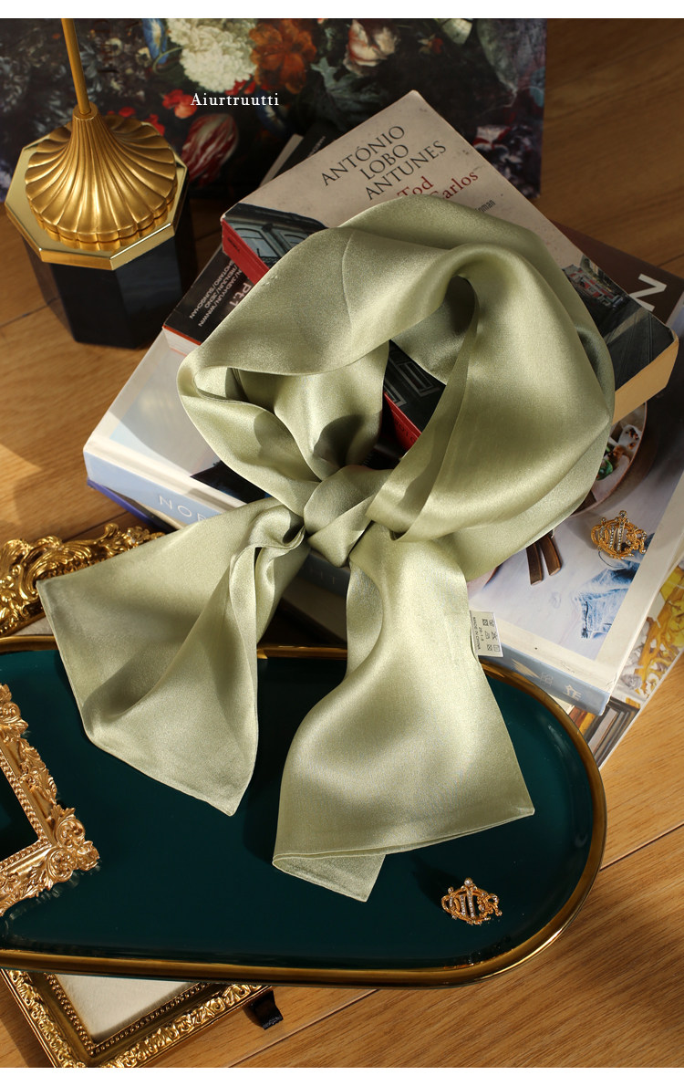 | 商品名稱: | 小眾設計 雙層重磅真絲緞面 大女主復古奢華絲巾披肩 純色小長巾 |