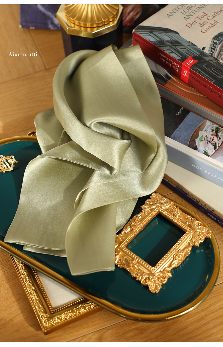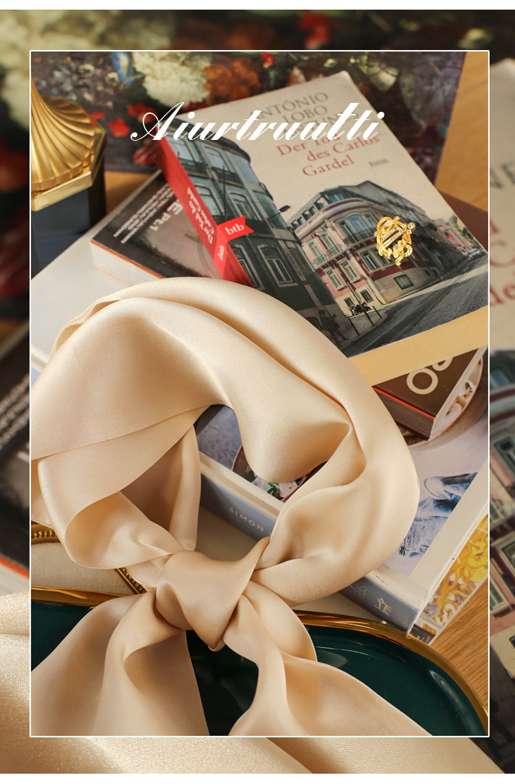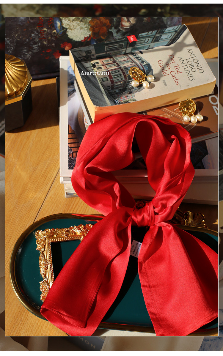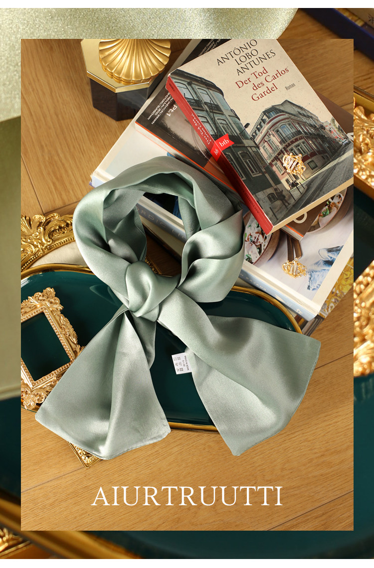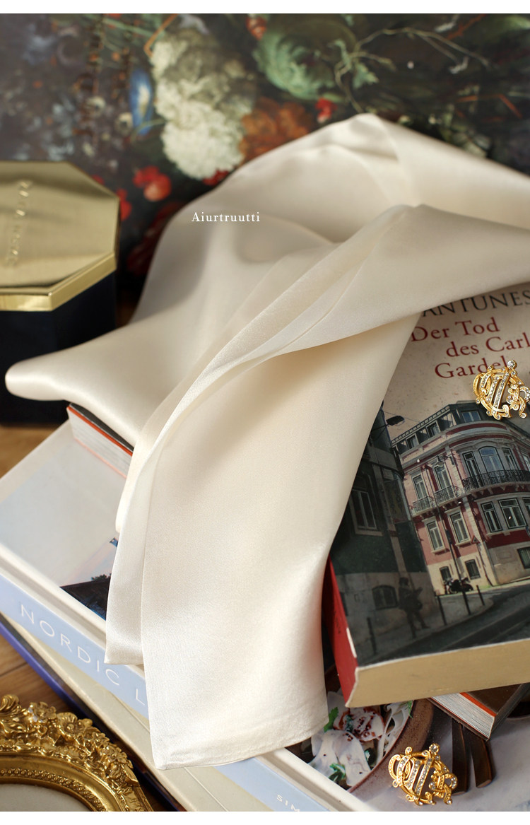 | 商品名稱: | 小眾設計 雙層重磅真絲緞面 大女主復古奢華絲巾披肩 純色小長巾 |