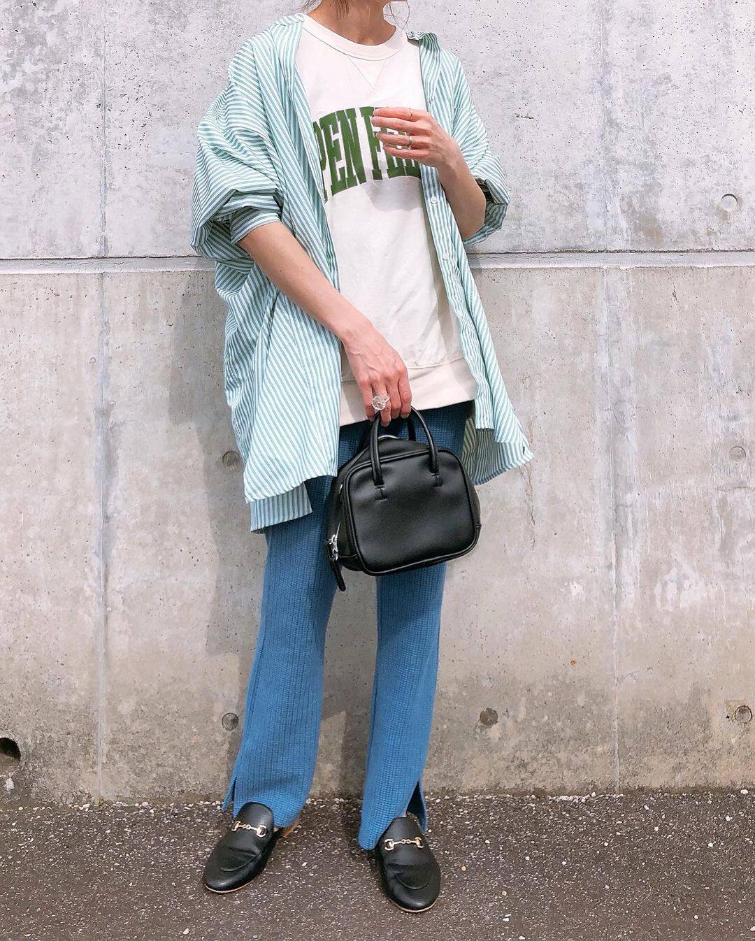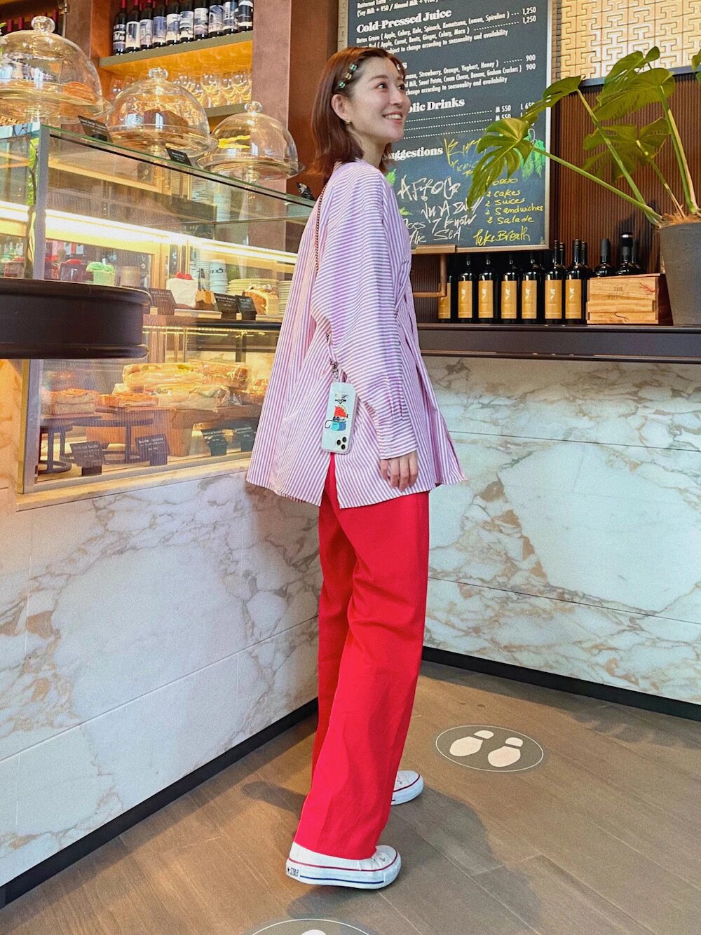 如果扣上扣子穿的話,建議是把下擺塞進去穿
