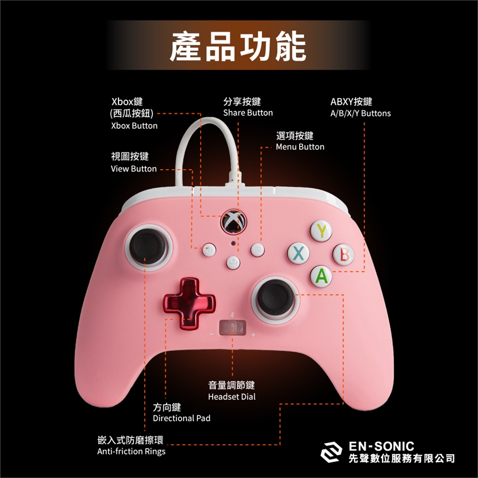 商品詳細介紹 體驗說明 不可體驗 使用方法說明 •Xbox 官方認證適用於 Xbox Series X|S,相容 Xbox One 和 Windows•可拆卸 3 公尺 USB 傳輸線 注意事項 •用於遊戲內音頻的標準 3.5 mm立體聲耳機插孔