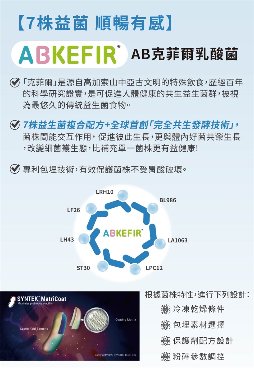 [消化金三角配方] :300億添加一次搞定:嚴選三大專利成份-AB克菲爾乳酸菌、GliSODin®法國專利洋香瓜萃取SOD、BioEcolians法國專利葡克醣-打造健康消化道,補好菌,使排便順暢。