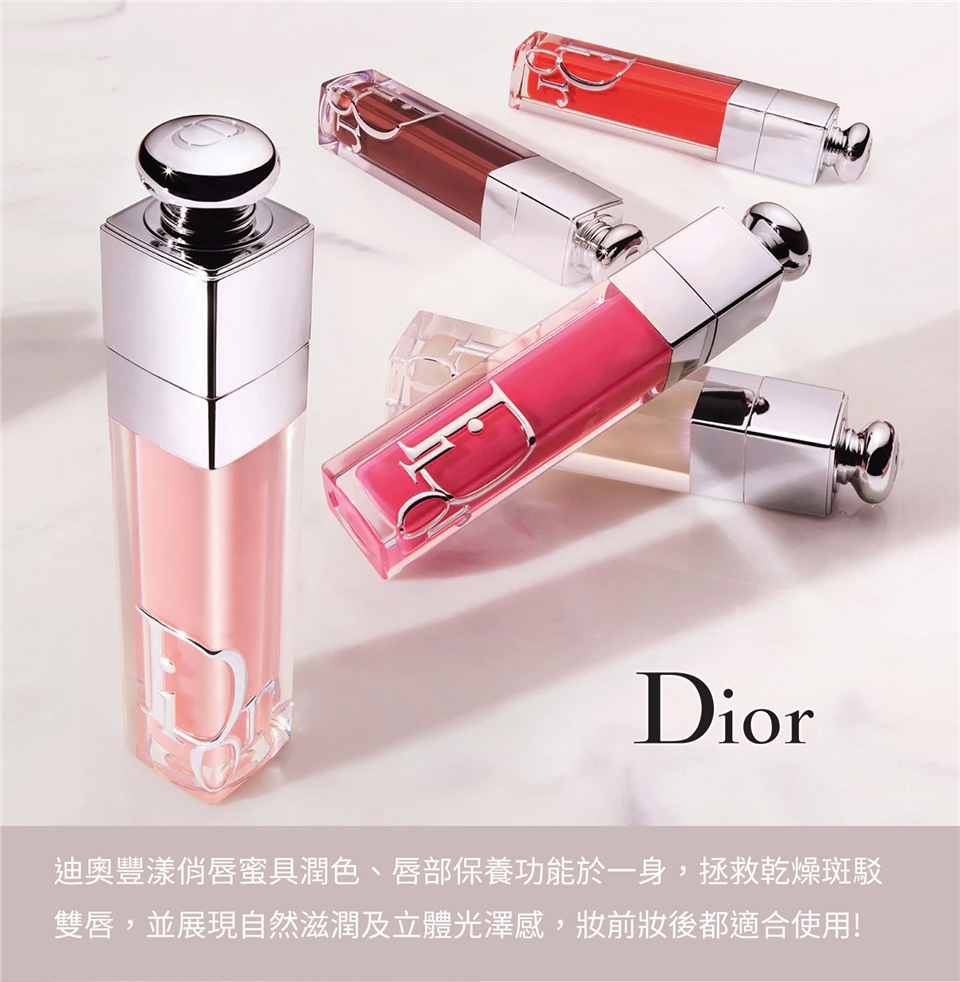 迪奧豐漾俏唇蜜具潤色、唇部保養功能於一身,拯救乾燥斑駁雙唇,並展現自然滋潤及立體光澤感,妝前妝後都適合使用!