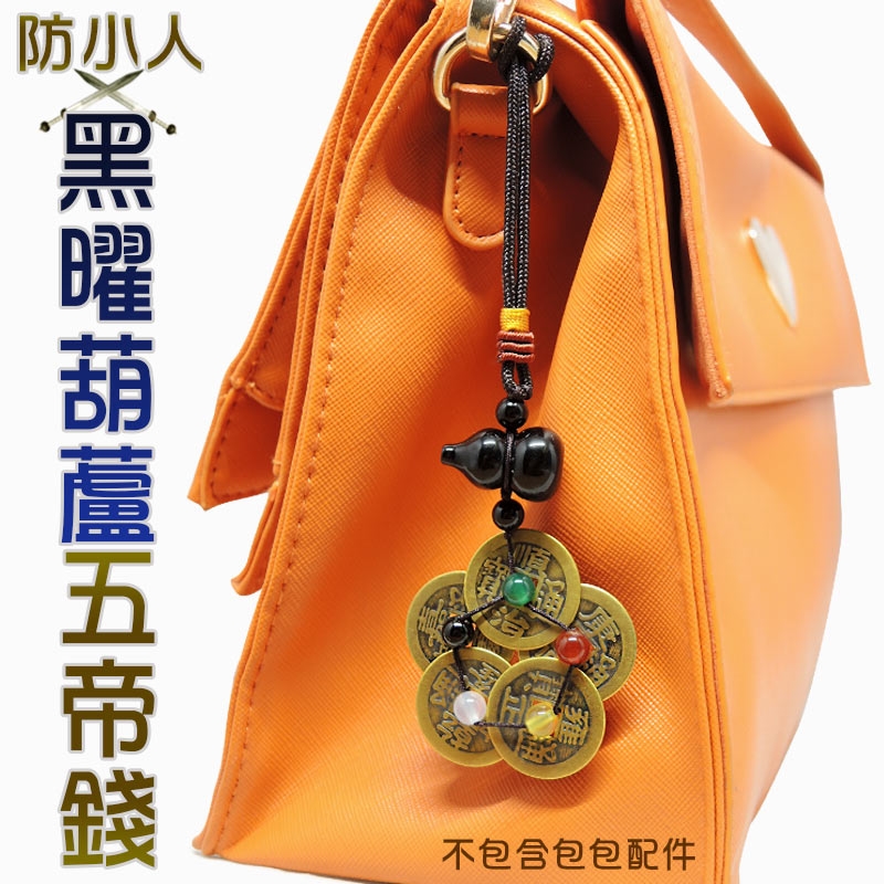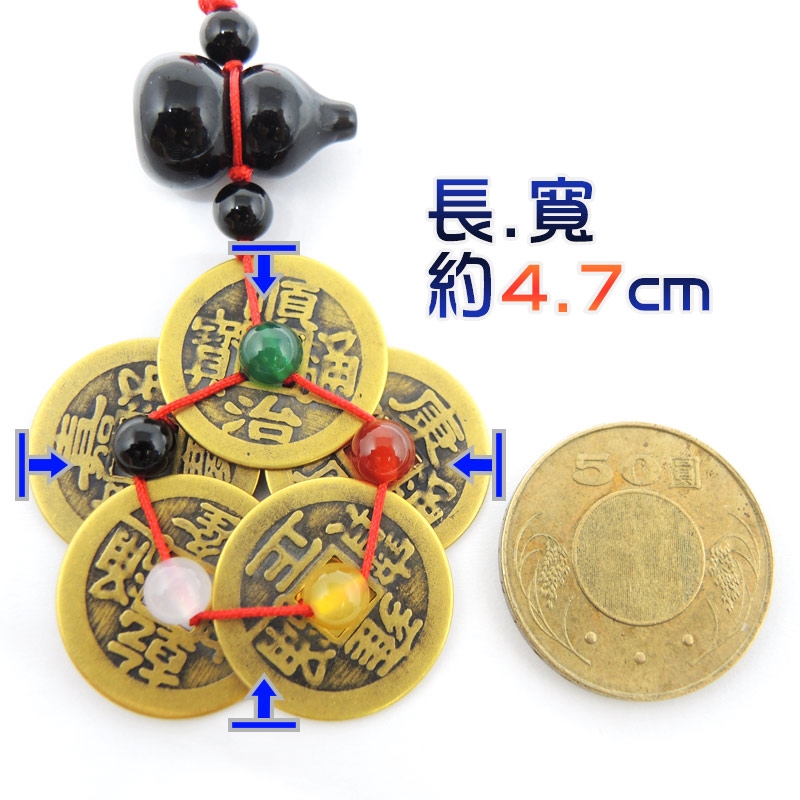 招財黑曜葫蘆五帝錢*1串:五帝錢直徑約2.2cm;全長約16公分~